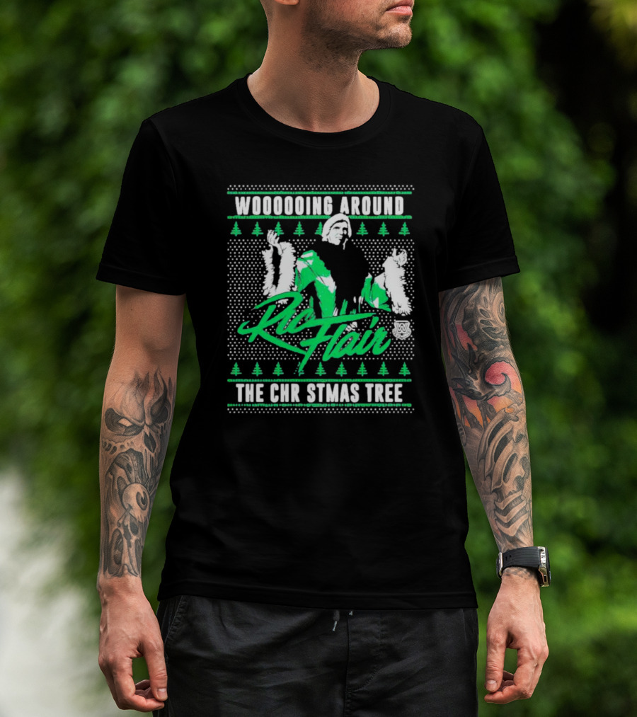 The Woooooing Around The Christmas Tree Ric Flair Ugly Faux Knit T-shirt is designed for everyday wear and a consistent fit. Fabric is pre-shrunk ring-spun cotton with durable stitching. See the size chart below for exact measurements.