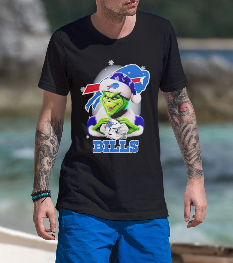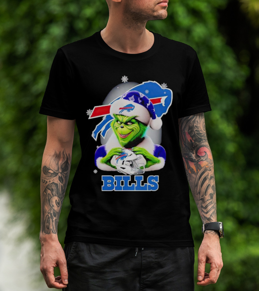 Grinch Love Buffalo Bills Christmas Santa Hat Snowflakes T-Shirt