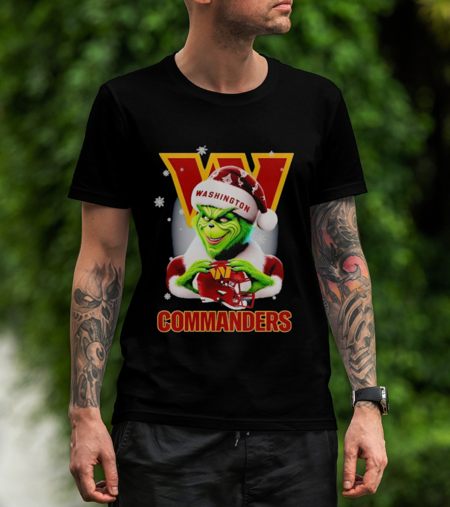 Washington Commanders Christmas Grinch In Santa Hat With Helmet T-Shirt