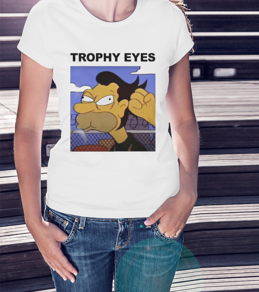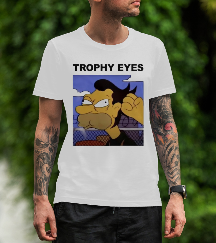 The TROPHY EYES The Simpson Character Image T-shirt is designed for everyday wear and a consistent fit. Fabric is pre-shrunk ring-spun cotton with durable stitching. See the size chart below for exact measurements.