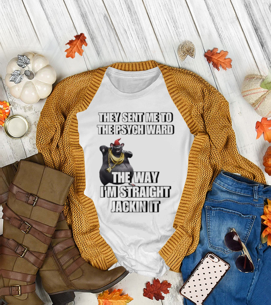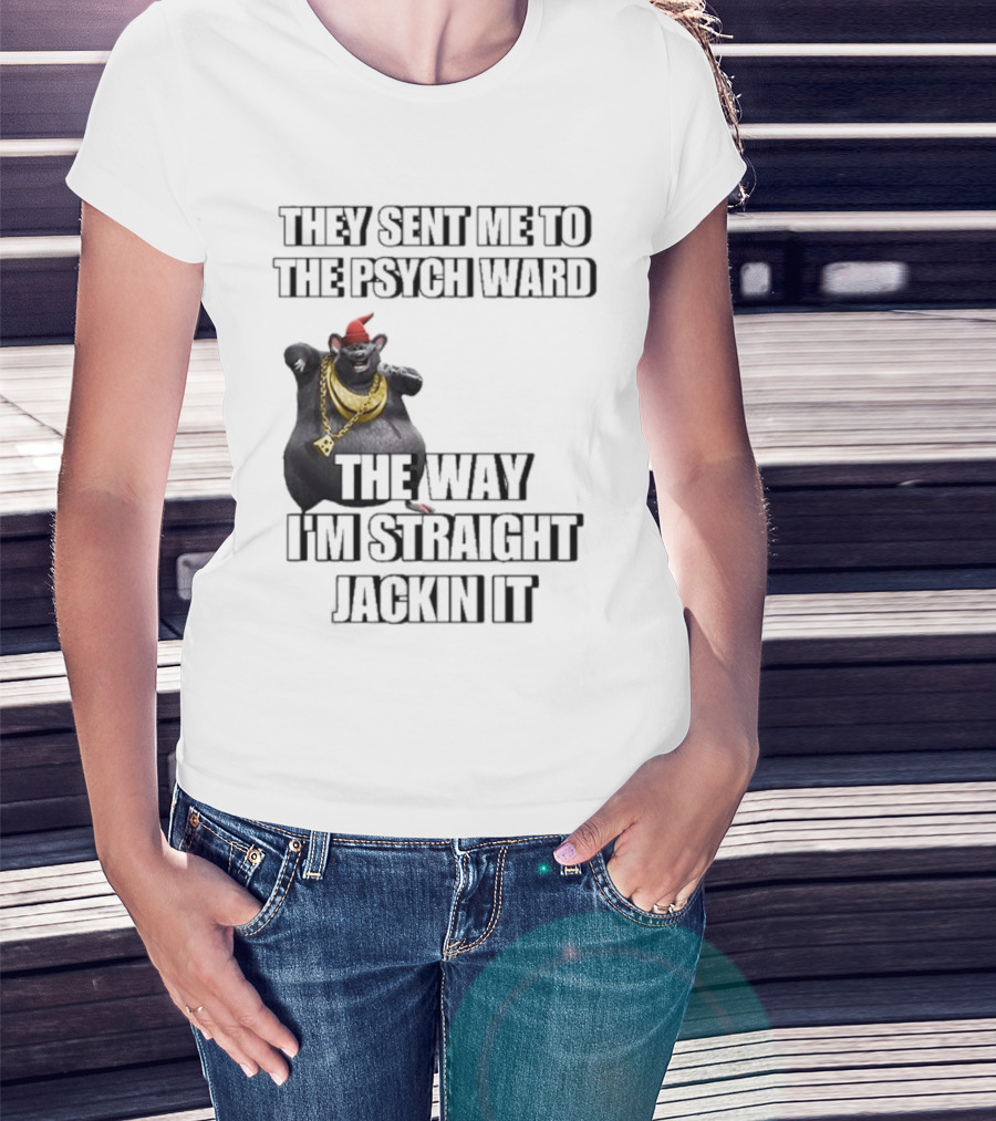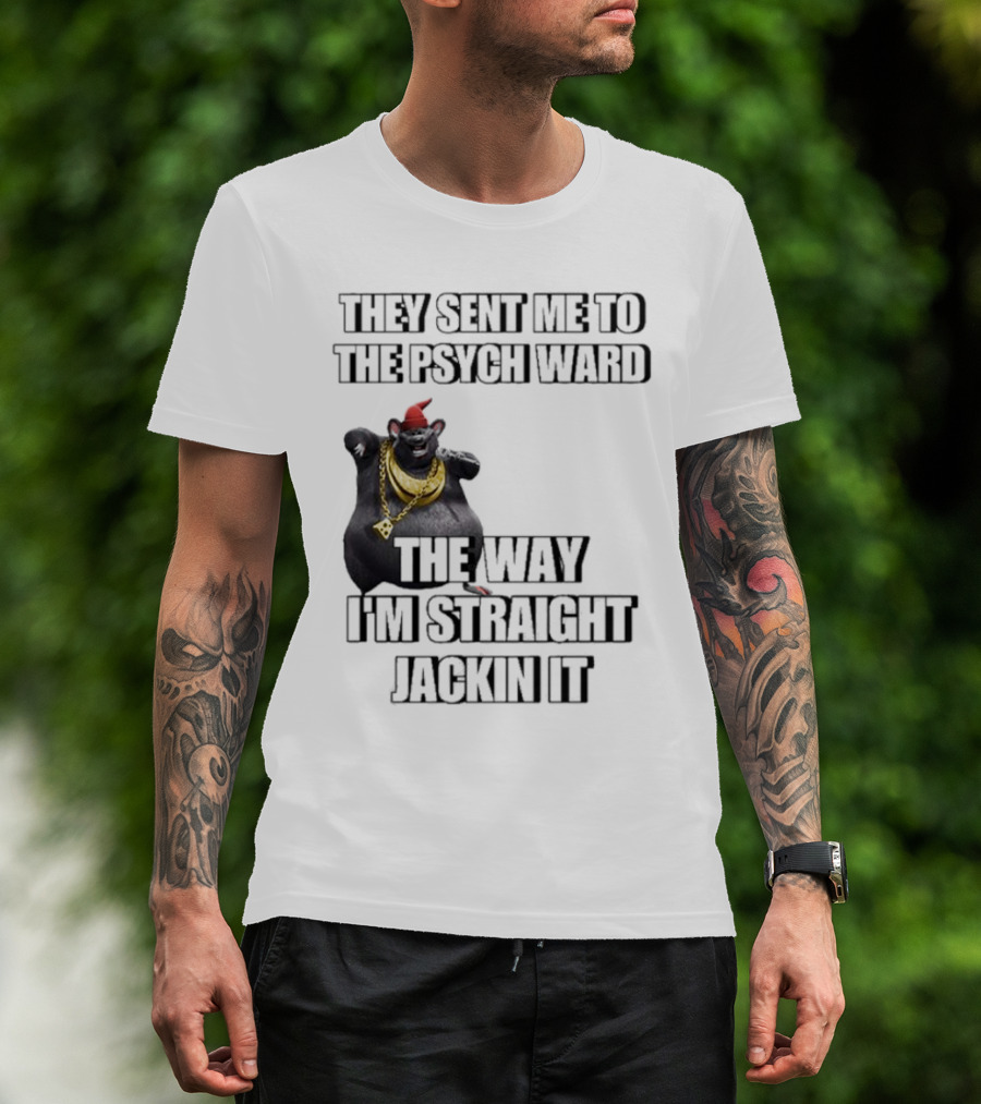 They Sent Me To The Psych Ward The Way I’m Straight Jackin It Dancing Rat With Gold Chain And Red Hat T-Shirt