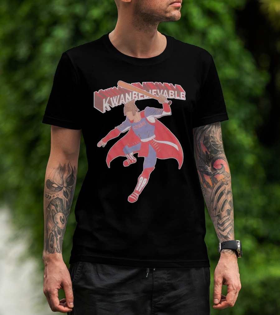 The Kwanbelievable Cleveland Guardians Warrior Hero Baseball T-shirt is designed for everyday wear and a consistent fit. Fabric is pre-shrunk ring-spun cotton with durable stitching. See the size chart below for exact measurements.
