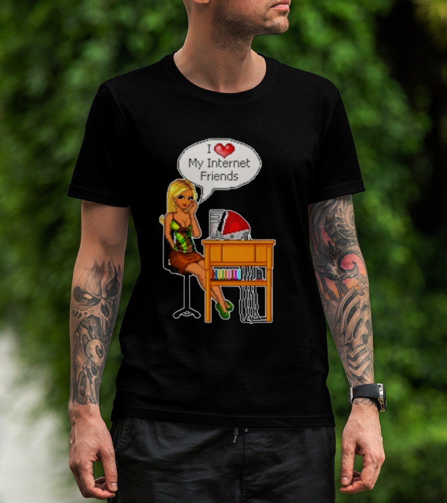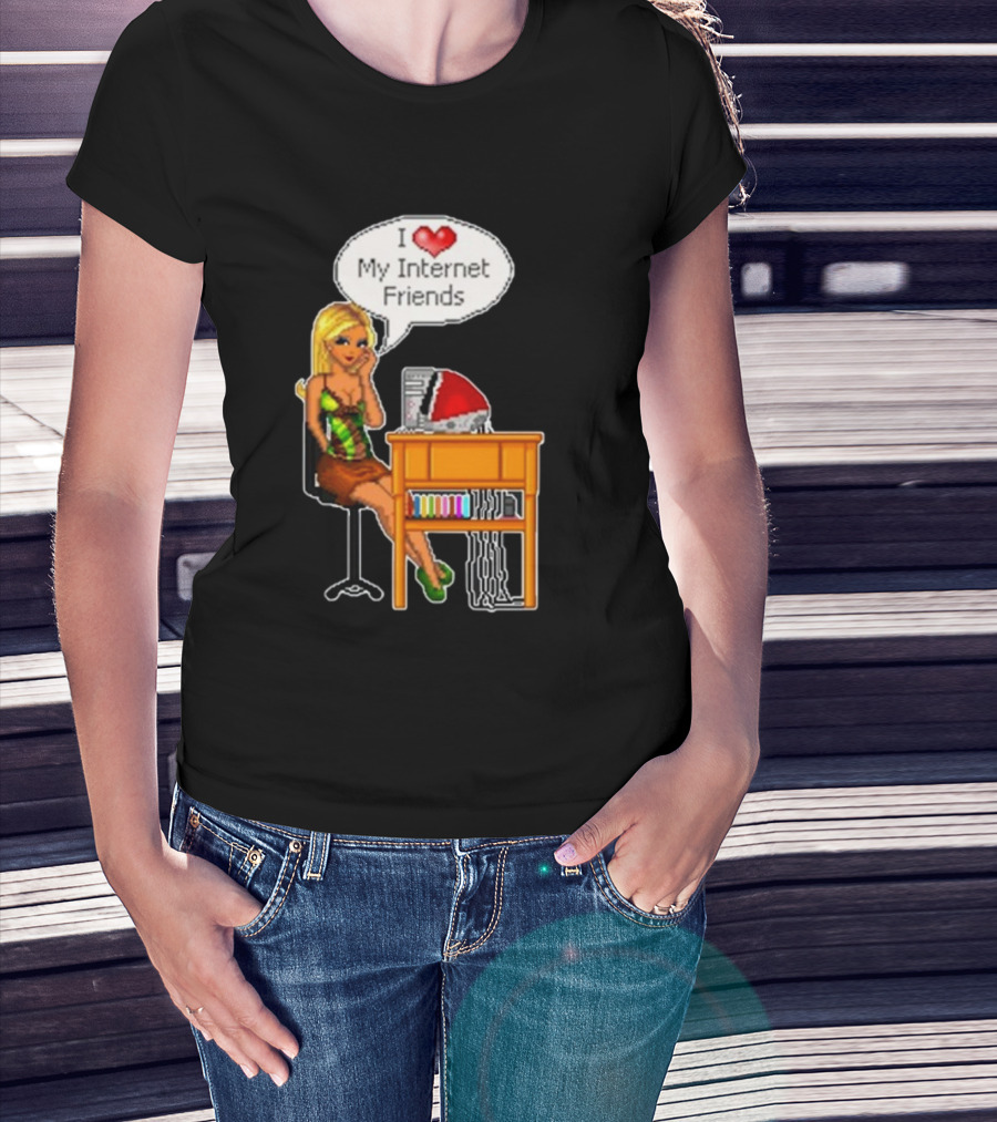 Cherrykitten I Love My Internet Friends Y2K Vintage Blonde Girl At Desk Pixel T-Shirt