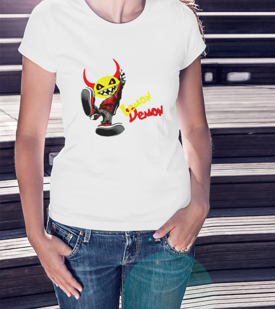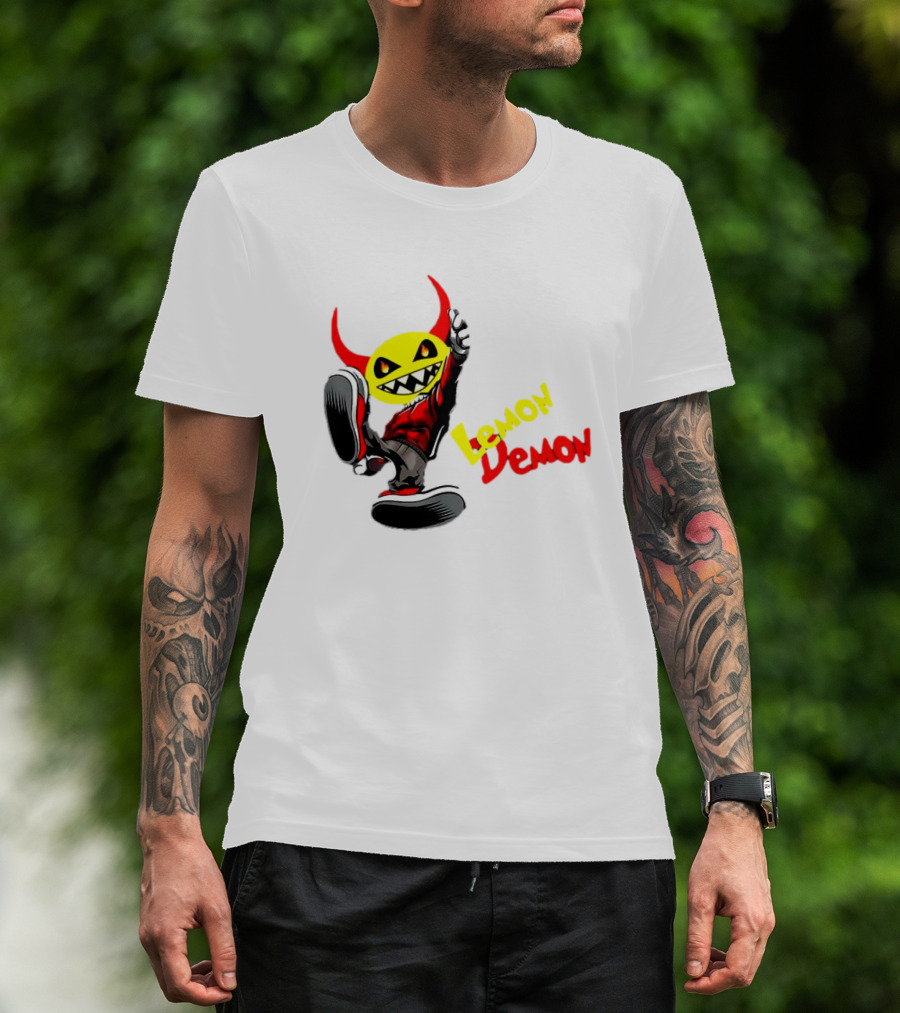 Lemon Demon Hip Hop Character In Sneakers With Red Devil Horns T-Shirt