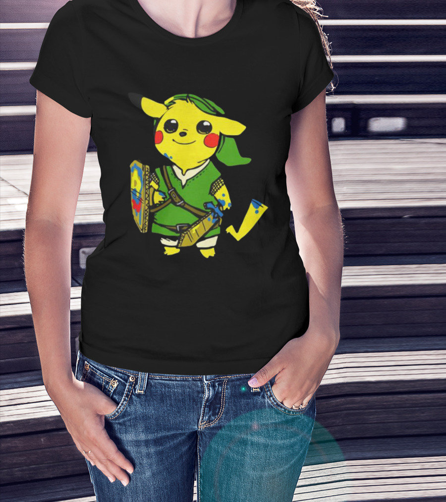 Pikachu In Link's Costume With Hylian Shield From The Legend Of Zelda T-Shirt