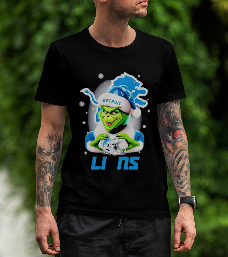 Grinch Loves Detroit Lions Christmas Holiday Football Magic T-Shirt