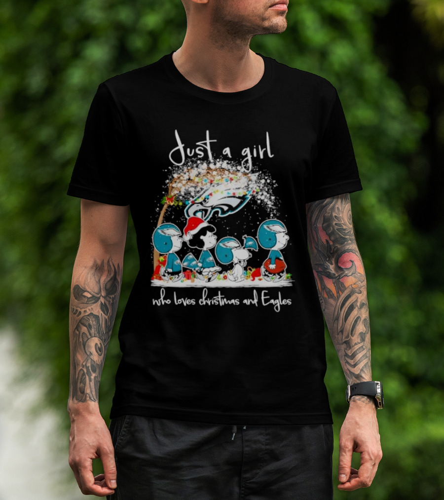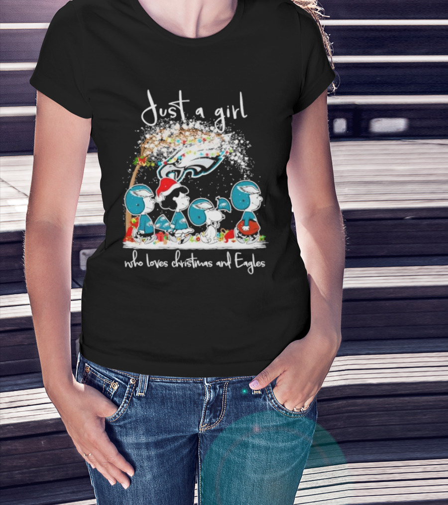 Peanuts Just A Girl Who Loves Christmas And Eagles T-Shirt