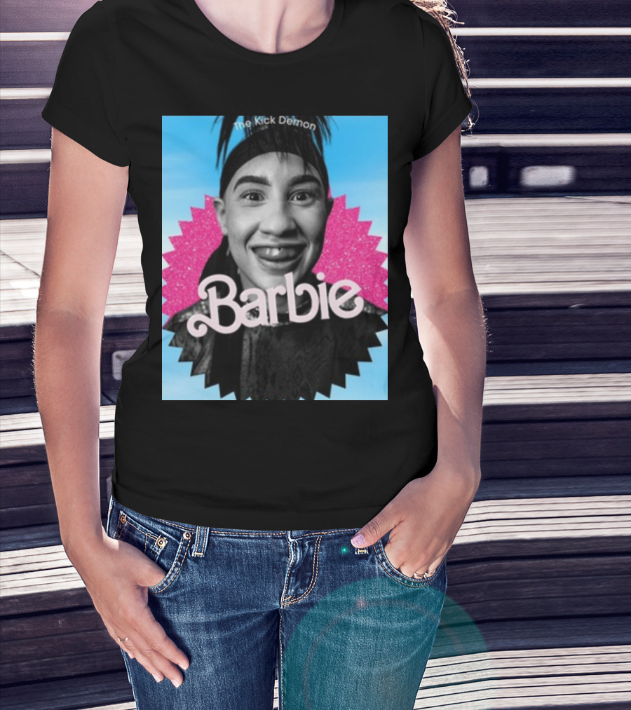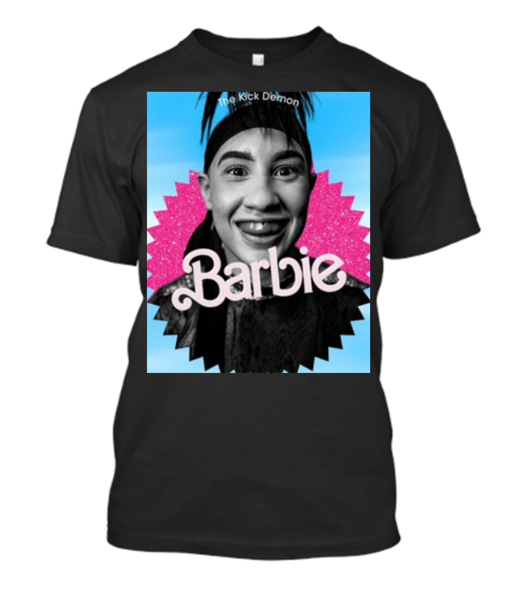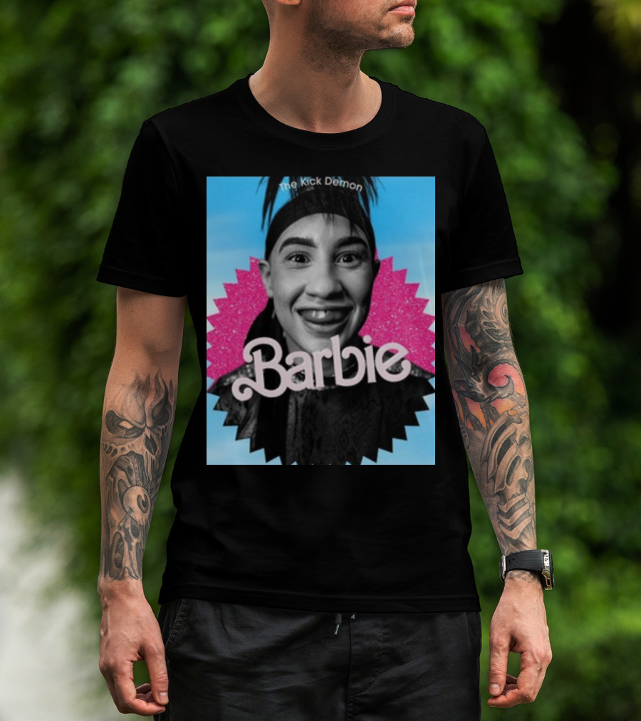 Kick Demon Barbie Smiling Portrait With Pink Starburst Background T-Shirt