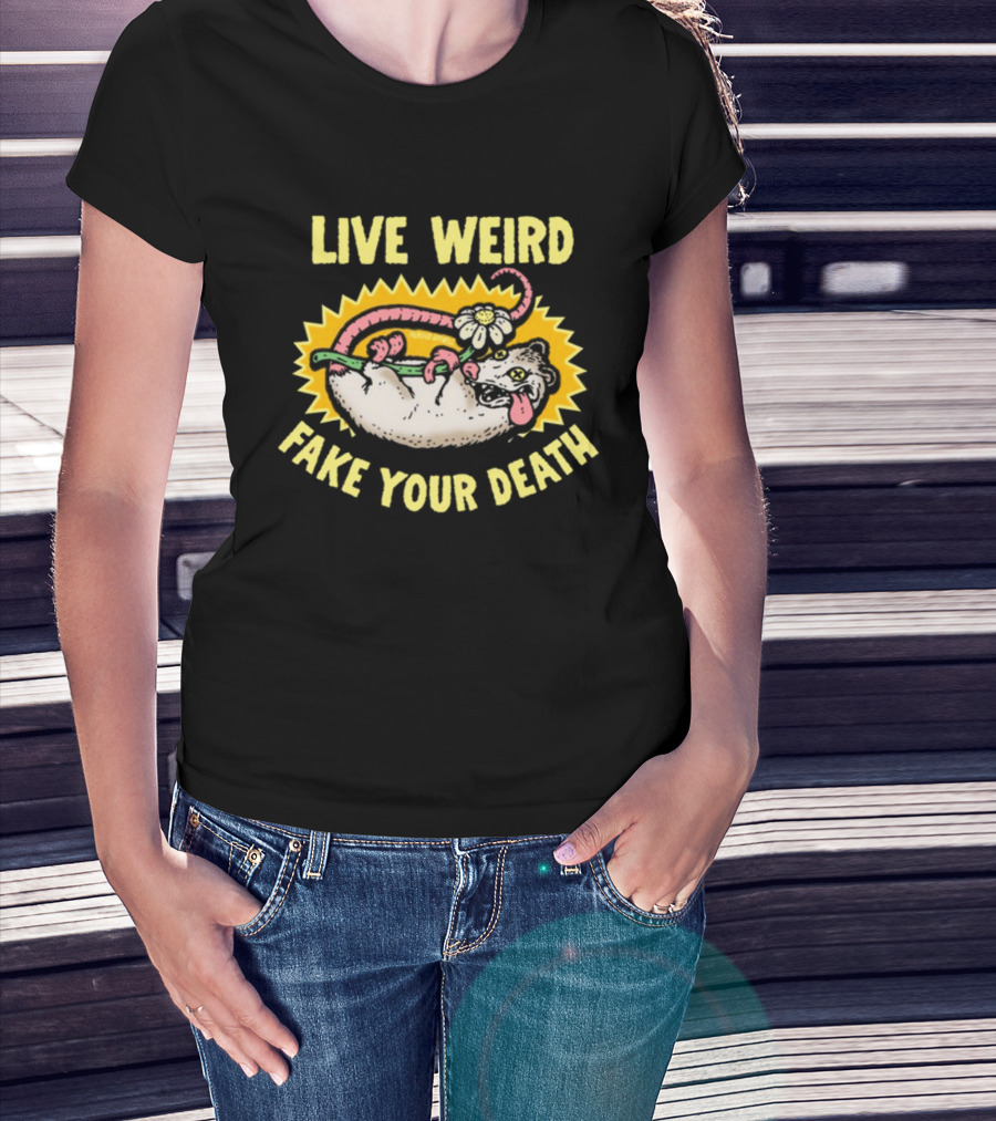 Live Weird Fake Your Death Quirky Possum T-Shirt