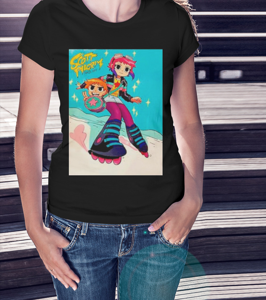 Scott Pilgrim Takes Off Roller Skating Adventure With Animated Style Characters T-Shirt
