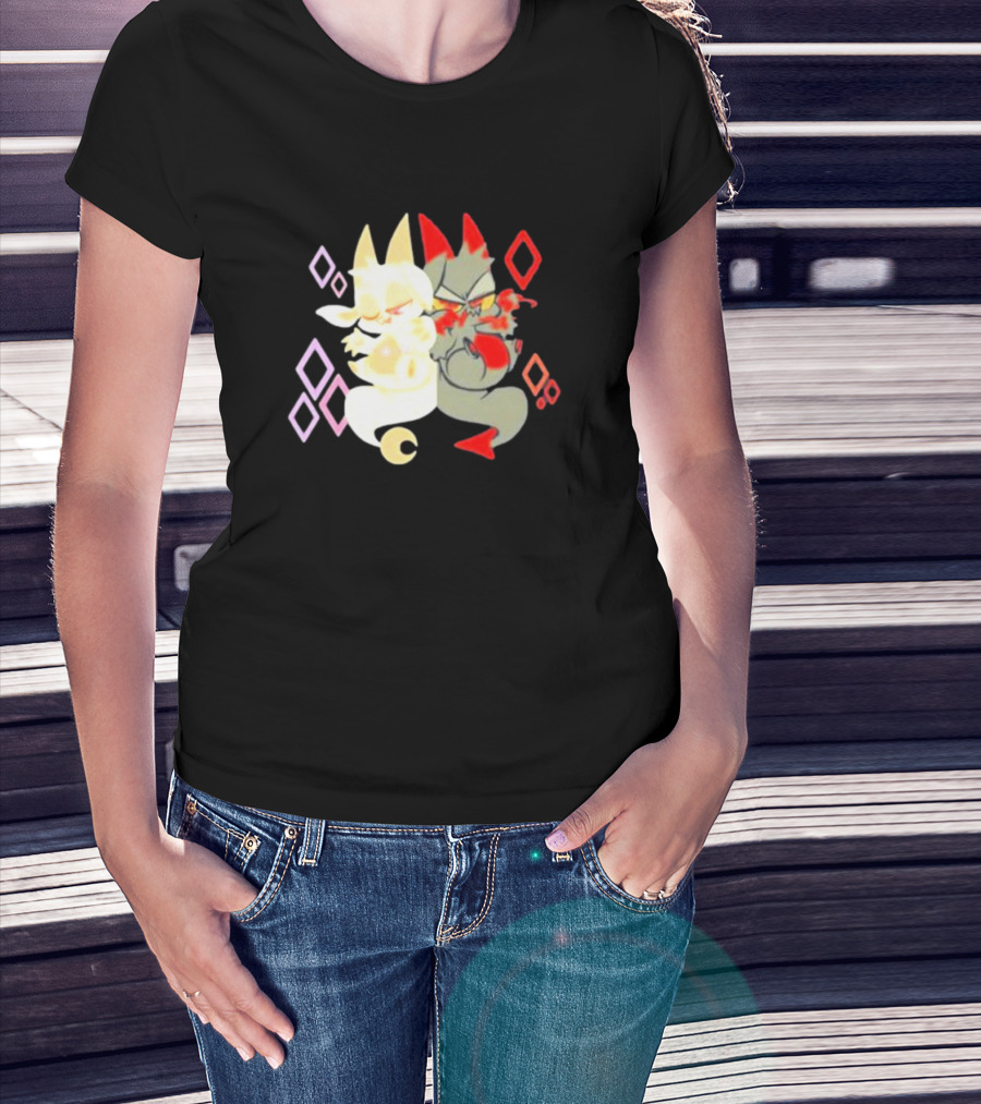 The buzzfeed chikn nuggit devil and angel characters with colorful diamond T-shirt is designed for everyday wear and a consistent fit. Fabric is pre-shrunk ring-spun cotton with durable stitching. See the size chart below for exact measurements.