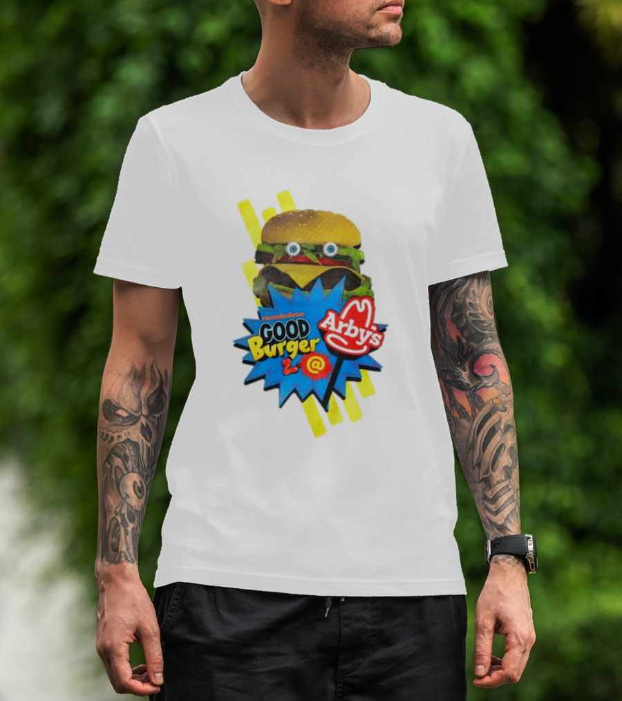 Nickelodeon Good Burger 2 Arby's Collaboration Burger With Eyeballs And Red Arby's T-Shirt