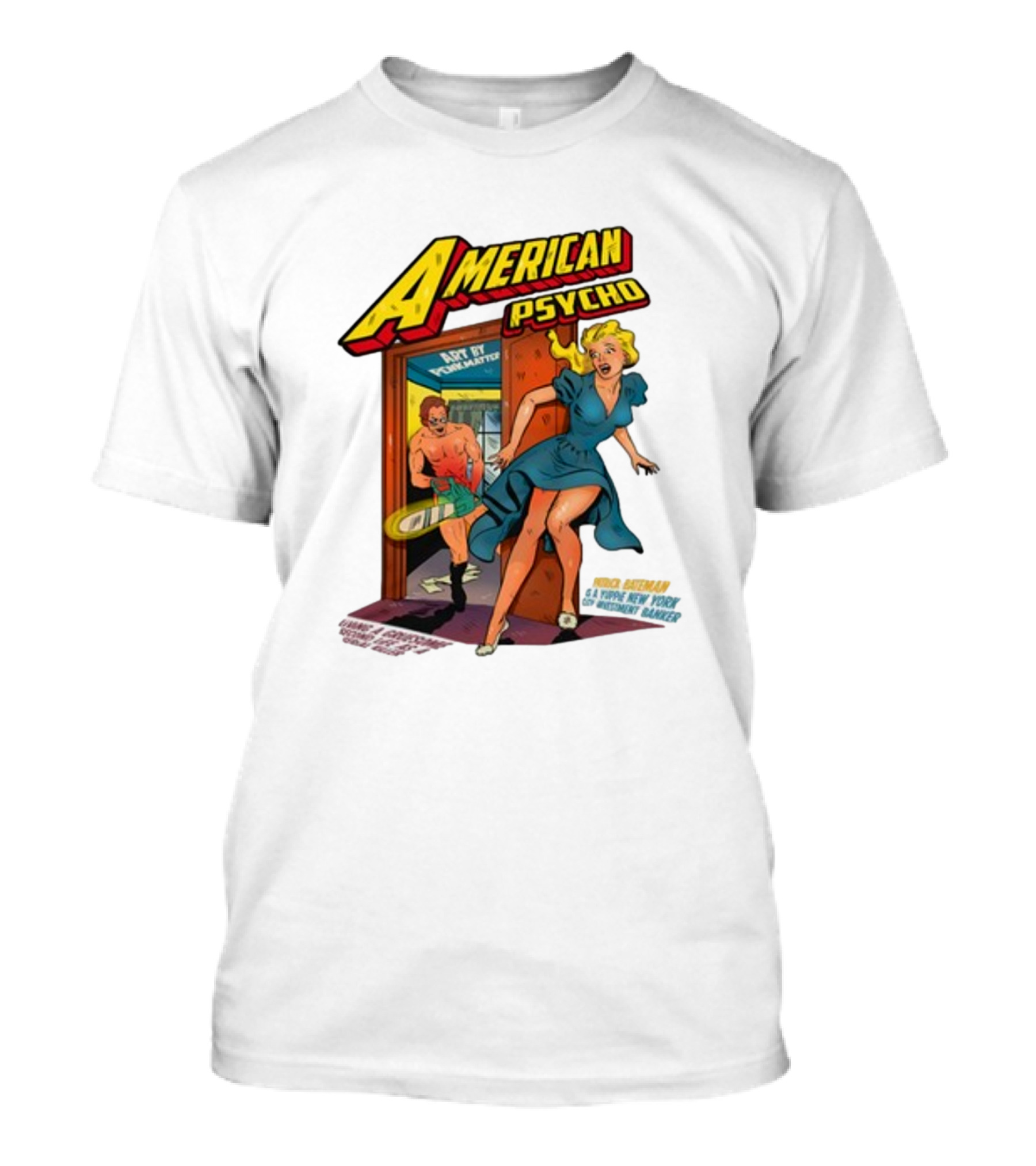 The American Psycho Comic Style Chase Vintage T-shirt is designed for everyday wear and a consistent fit. Fabric is pre-shrunk ring-spun cotton with durable stitching. See the size chart below for exact measurements.