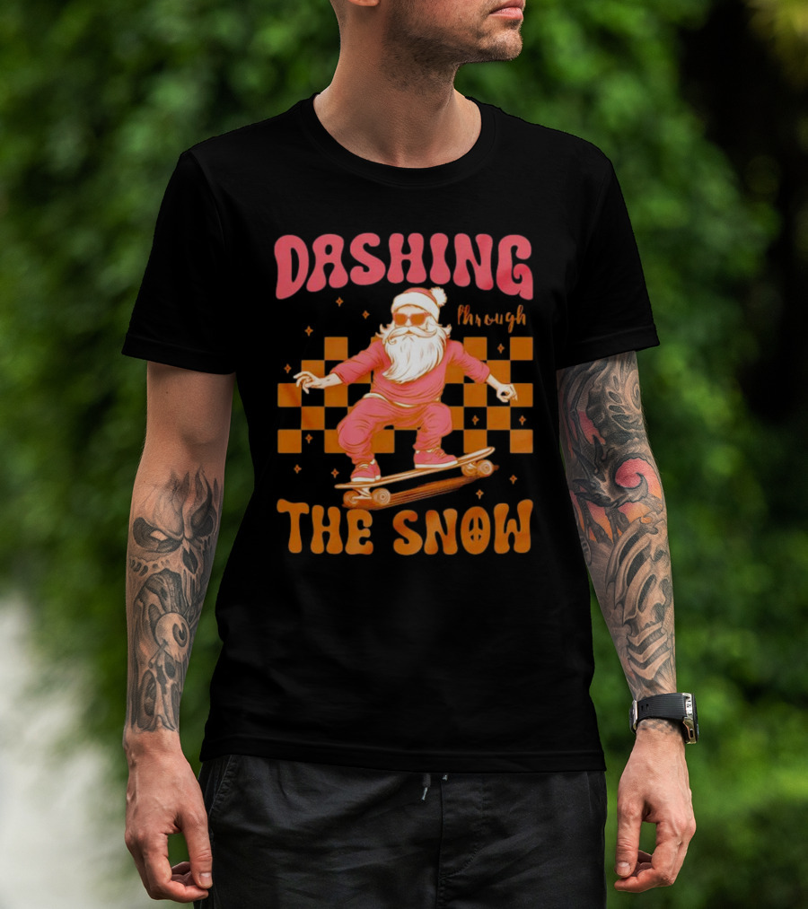 Dashing Through The Snow Santa Skateboard Christmas T-Shirt