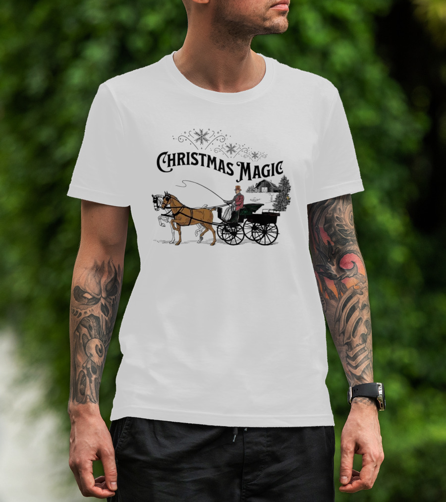 Christmas Magic Horse And Carriage Scene T-Shirt