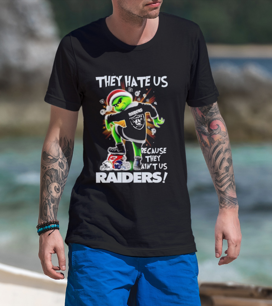 Grinch Raiders Christmas They Hate Us Because They Ain't Us Las Vegas Chiefs Patriots T-Shirt