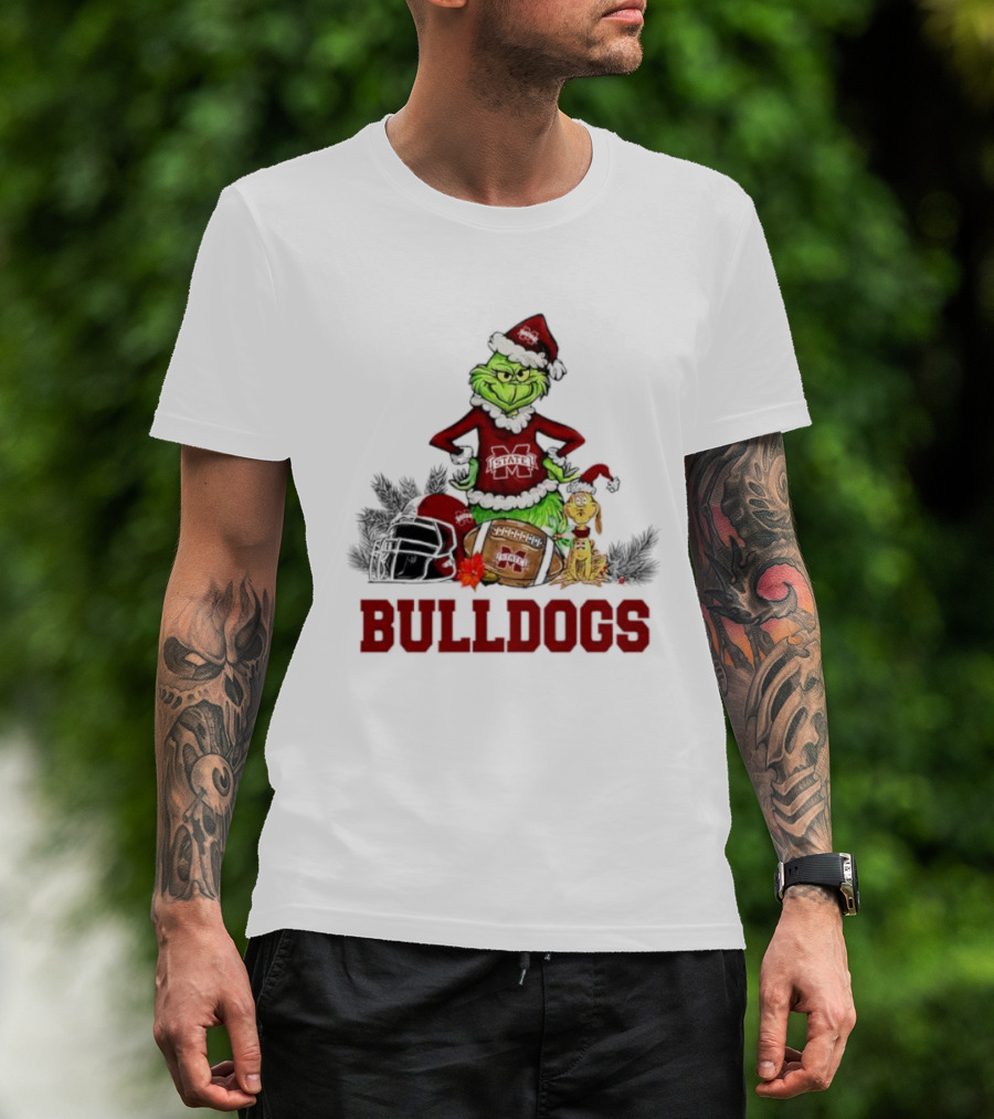 Bulldogs Grinch Max Dog Christmas Football Santa Hat T-Shirt
