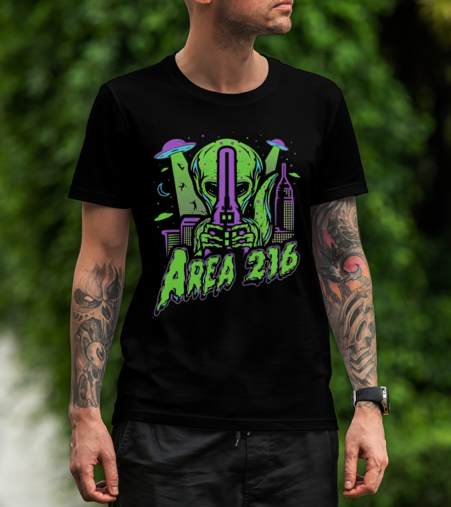 Area 216 Alien UFO City Skyline Neon T-Shirt