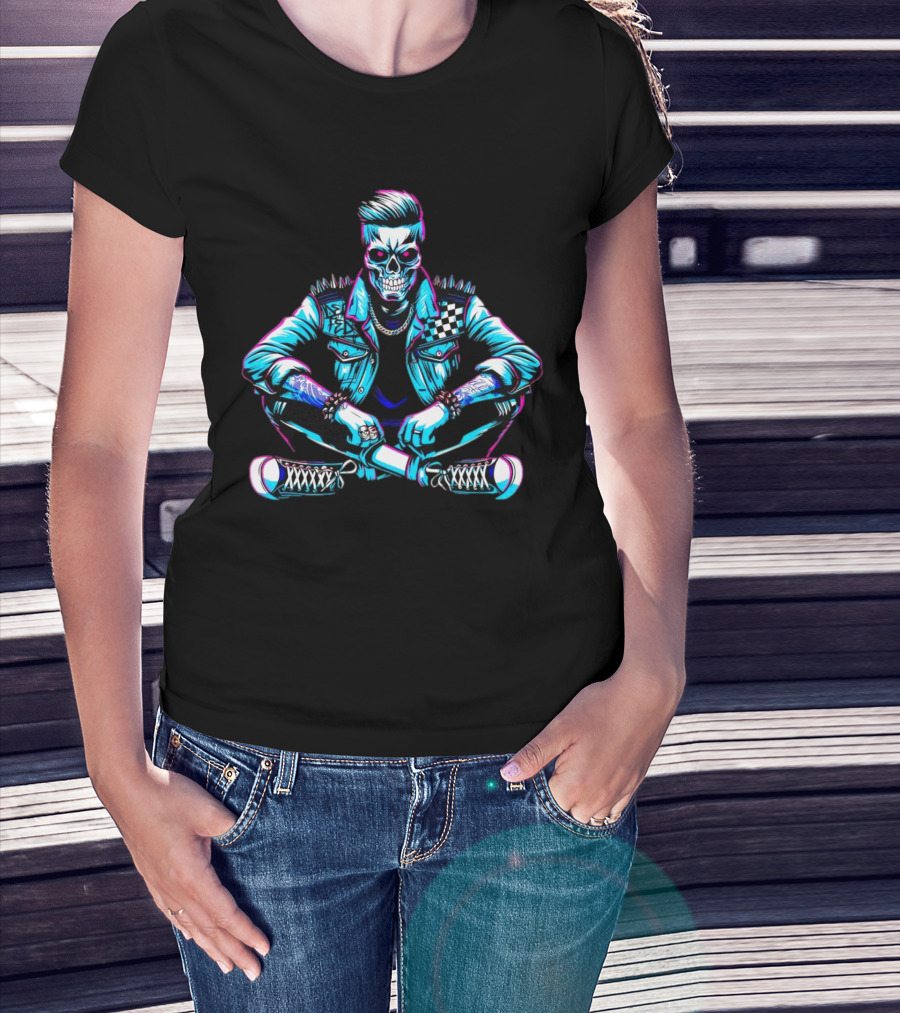 The TTD Wrestling Mr. Dead Fed Skull Punk Skeleton with Spiked Jacket and Tattoos T-shirt is designed for everyday wear and a consistent fit. Fabric is pre-shrunk ring-spun cotton with durable stitching. See the size chart below for exact measurements.