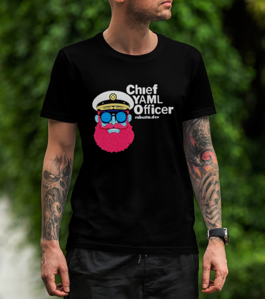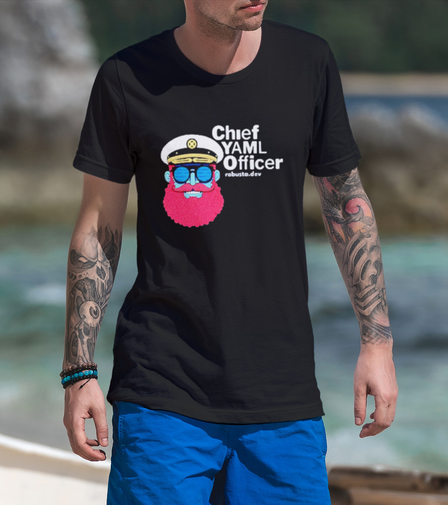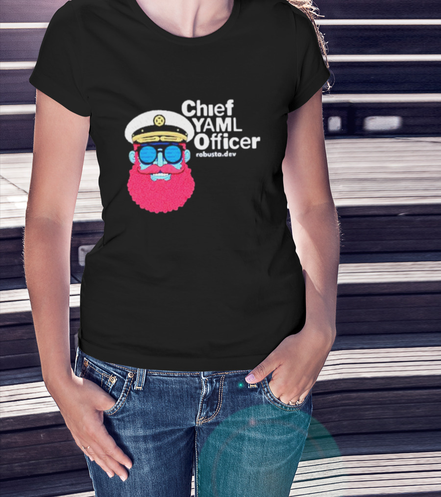 The Chief Yaml Officer Robusta.dev T-shirt is designed for everyday wear and a consistent fit. Fabric is pre-shrunk ring-spun cotton with durable stitching. See the size chart below for exact measurements.