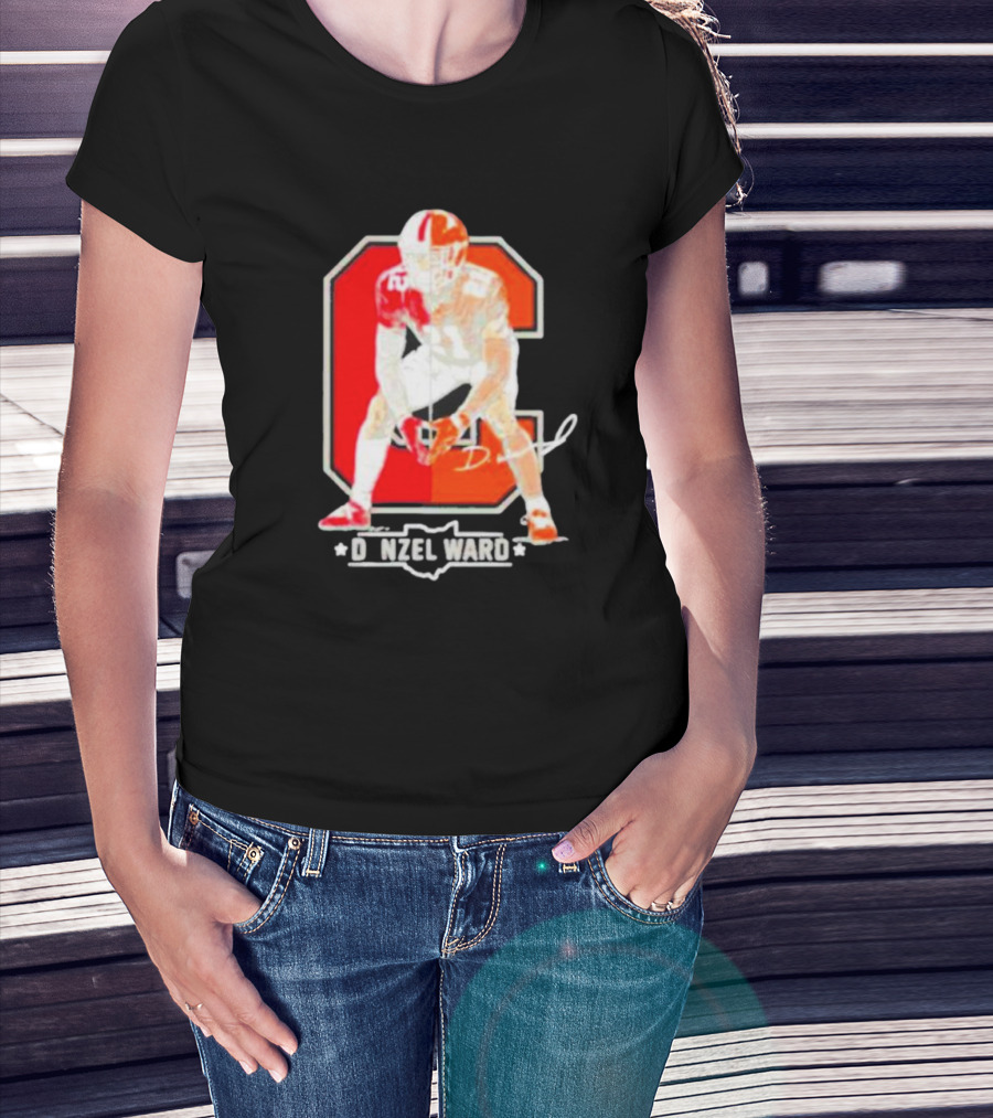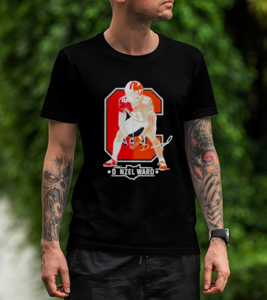 Denzel Ward Ohio Football Columbus To Cleveland Signature Orange C T-Shirt
