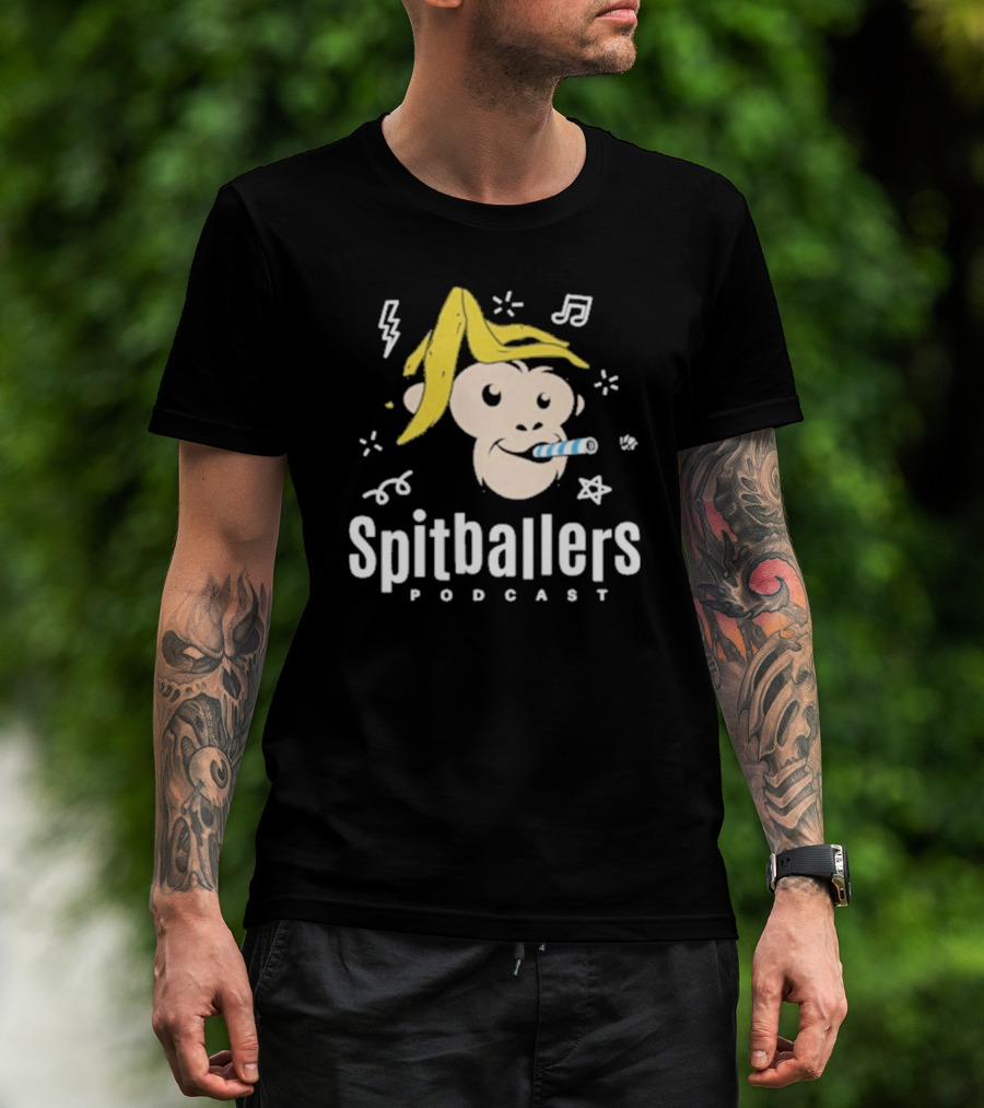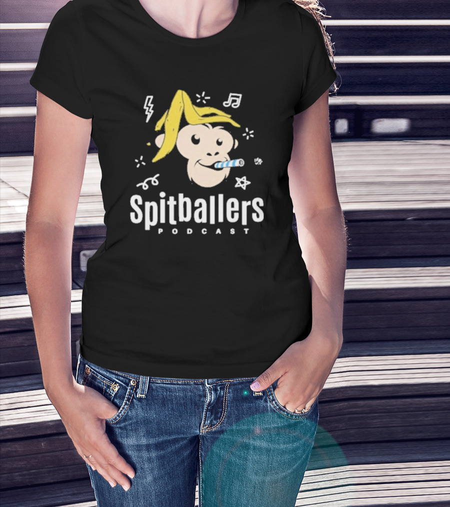 Spitballers Podcast Monkey With Party Accessories And Musical Notes T-Shirt