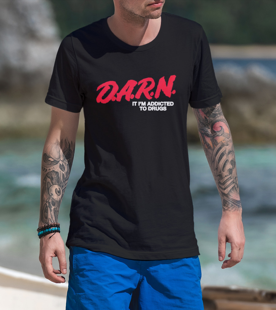 The DARN It I'm Addicted to Drugs T-shirt is designed for everyday wear and a consistent fit. Fabric is pre-shrunk ring-spun cotton with durable stitching. See the size chart below for exact measurements.