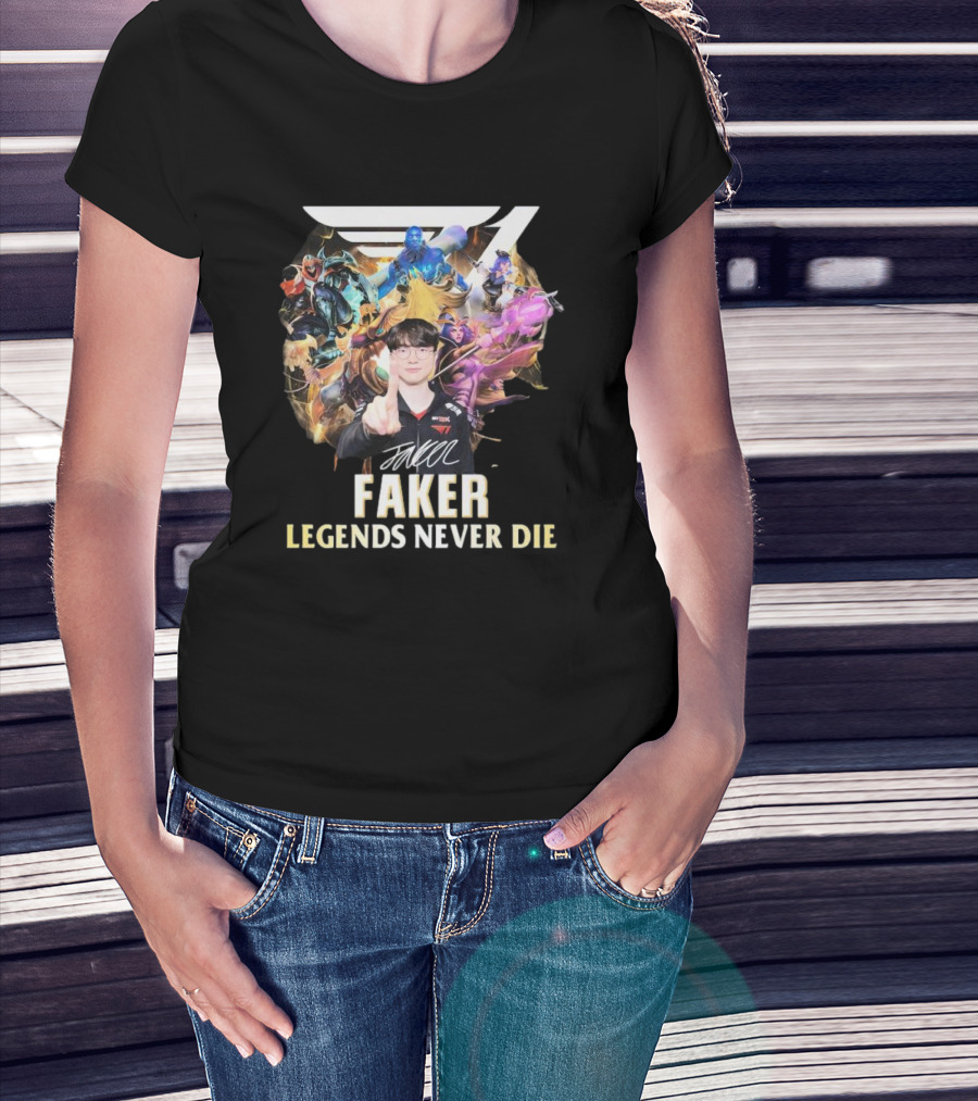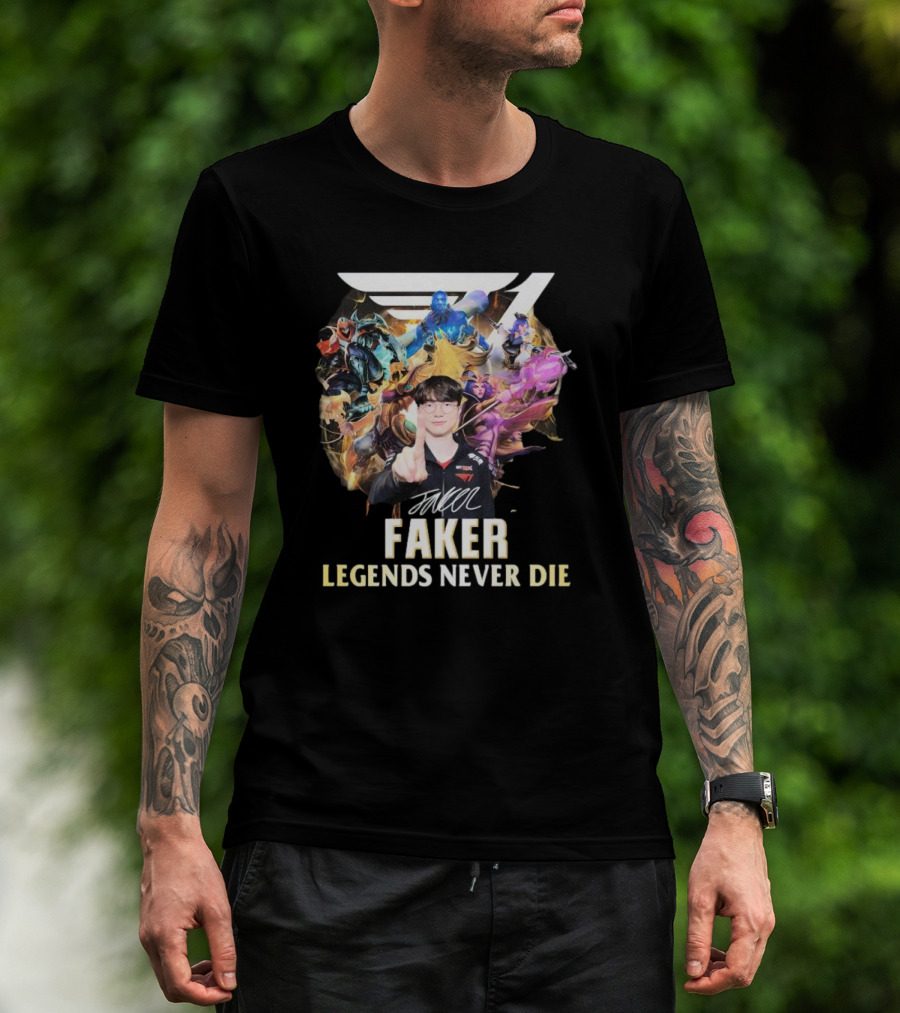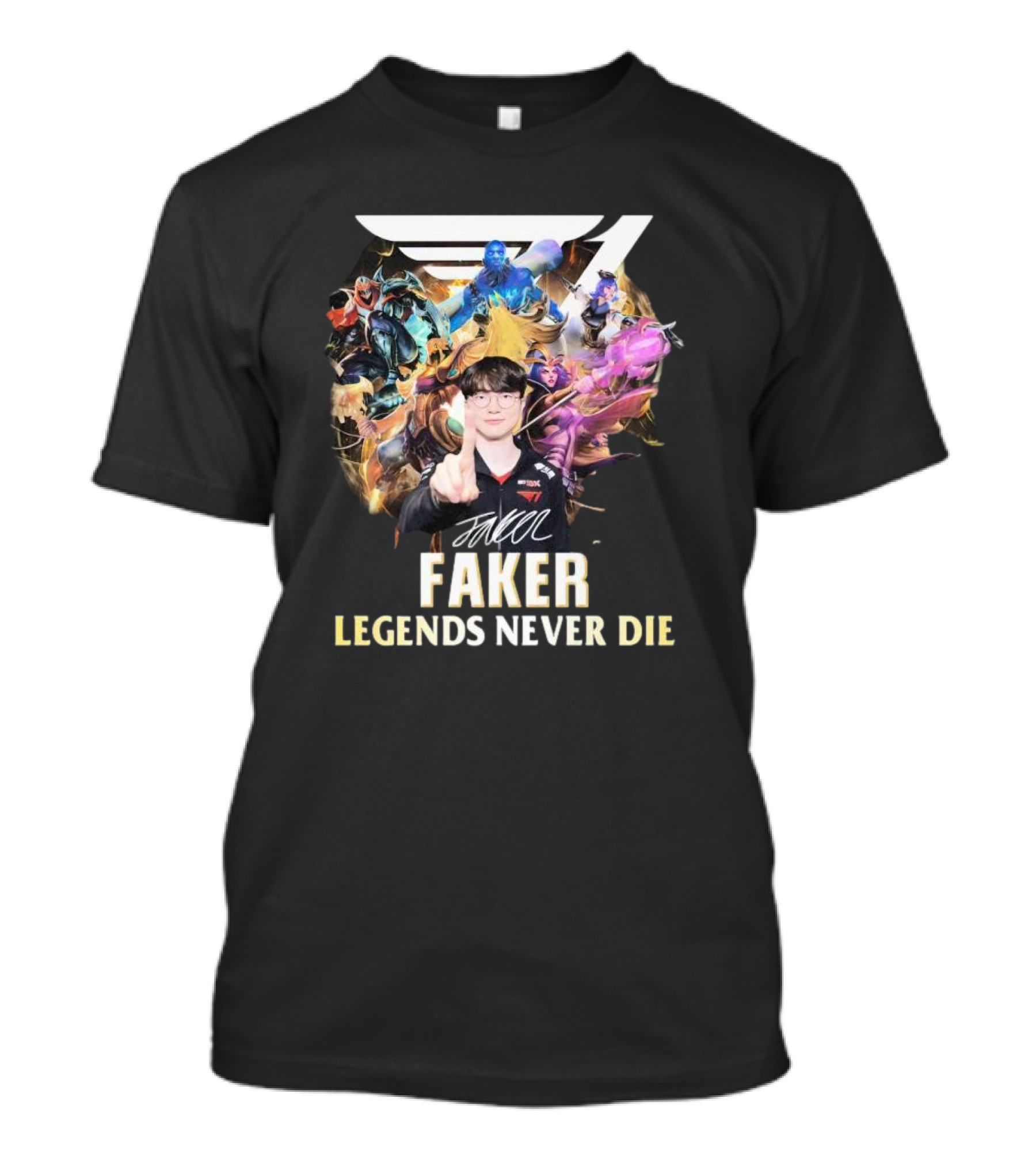 Faker Legends Never Die Signature T1 Esports Champion T-Shirt