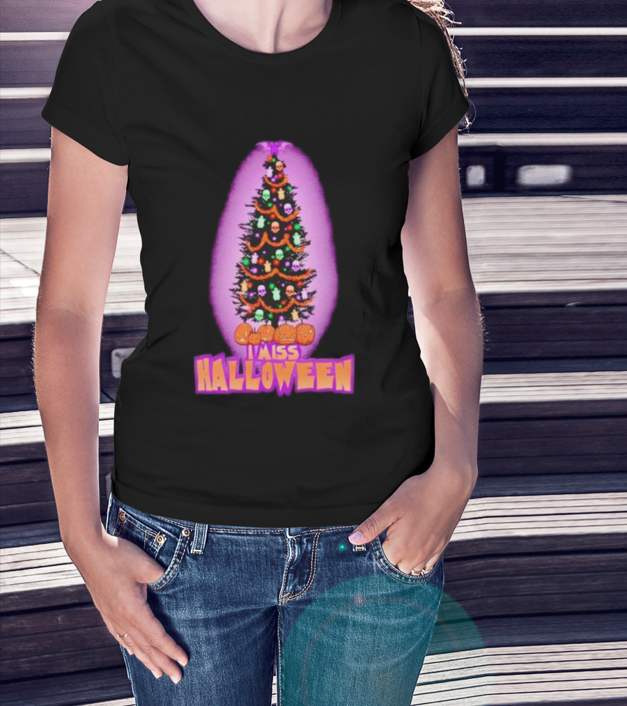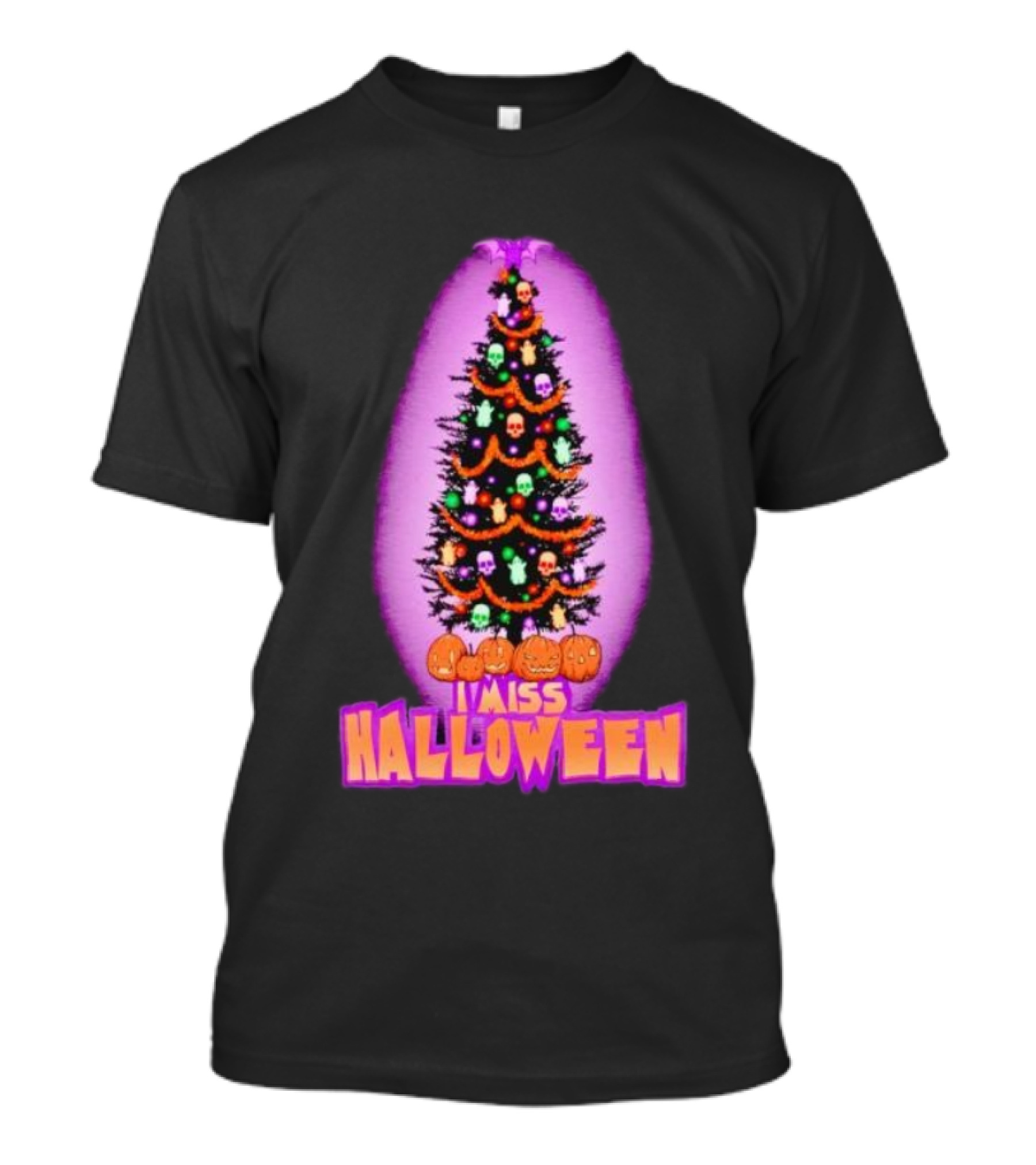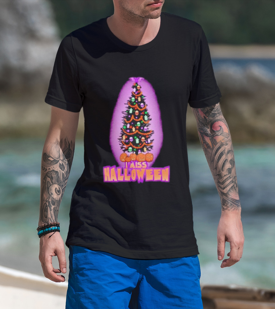 I Miss Halloween Christmas Tree With Pumpkins And Skulls T-Shirt