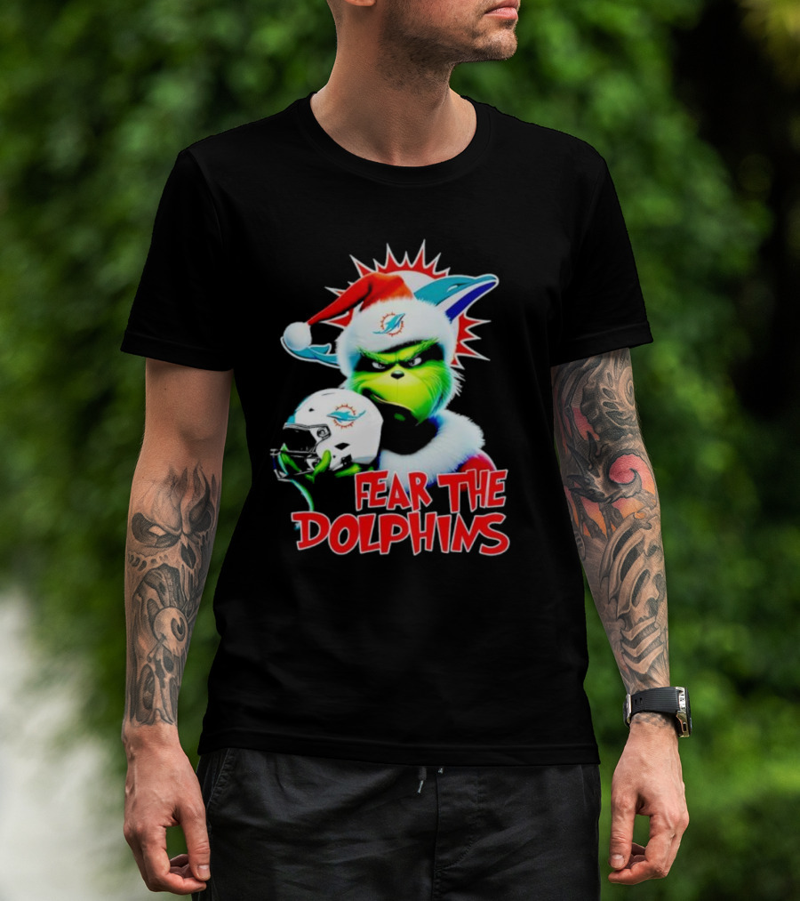 Fear The Dolphins Grinch Santa Miami NFL T-Shirt