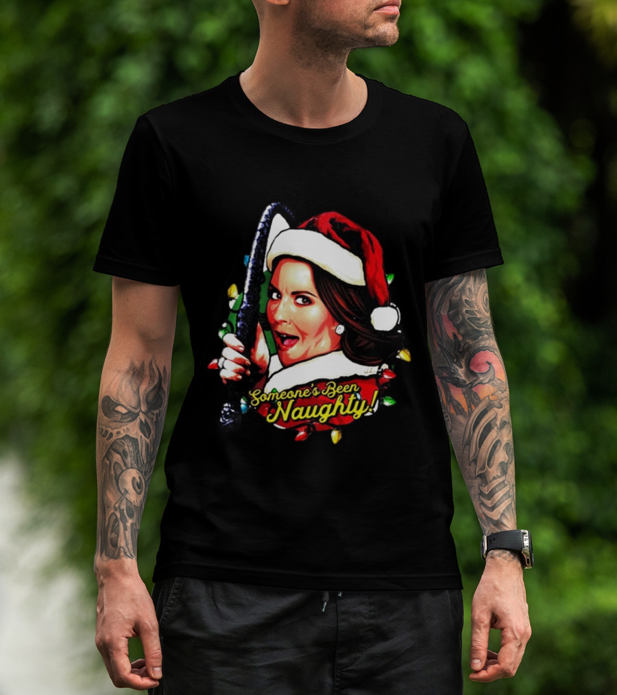 Karen Walker Someone’s Been Naughty Christmas Santa Whip Lights T-Shirt