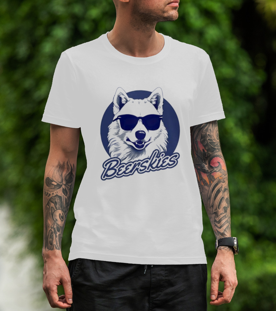 The Beerskies Dog with Sunglasses T-shirt is designed for everyday wear and a consistent fit. Fabric is pre-shrunk ring-spun cotton with durable stitching. See the size chart below for exact measurements.