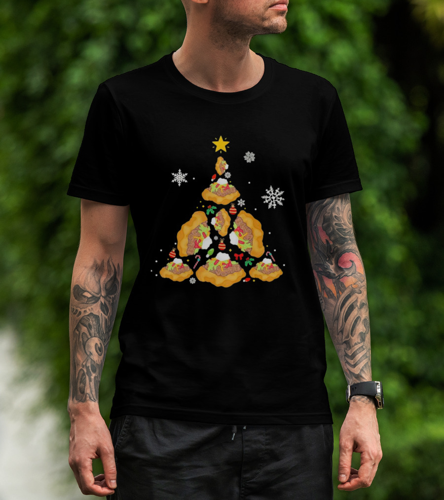 The Oh Taco Christmas Tree Festive Holiday Taco Christmas Tree T-shirt is designed for everyday wear and a consistent fit. Fabric is pre-shrunk ring-spun cotton with durable stitching. See the size chart below for exact measurements.