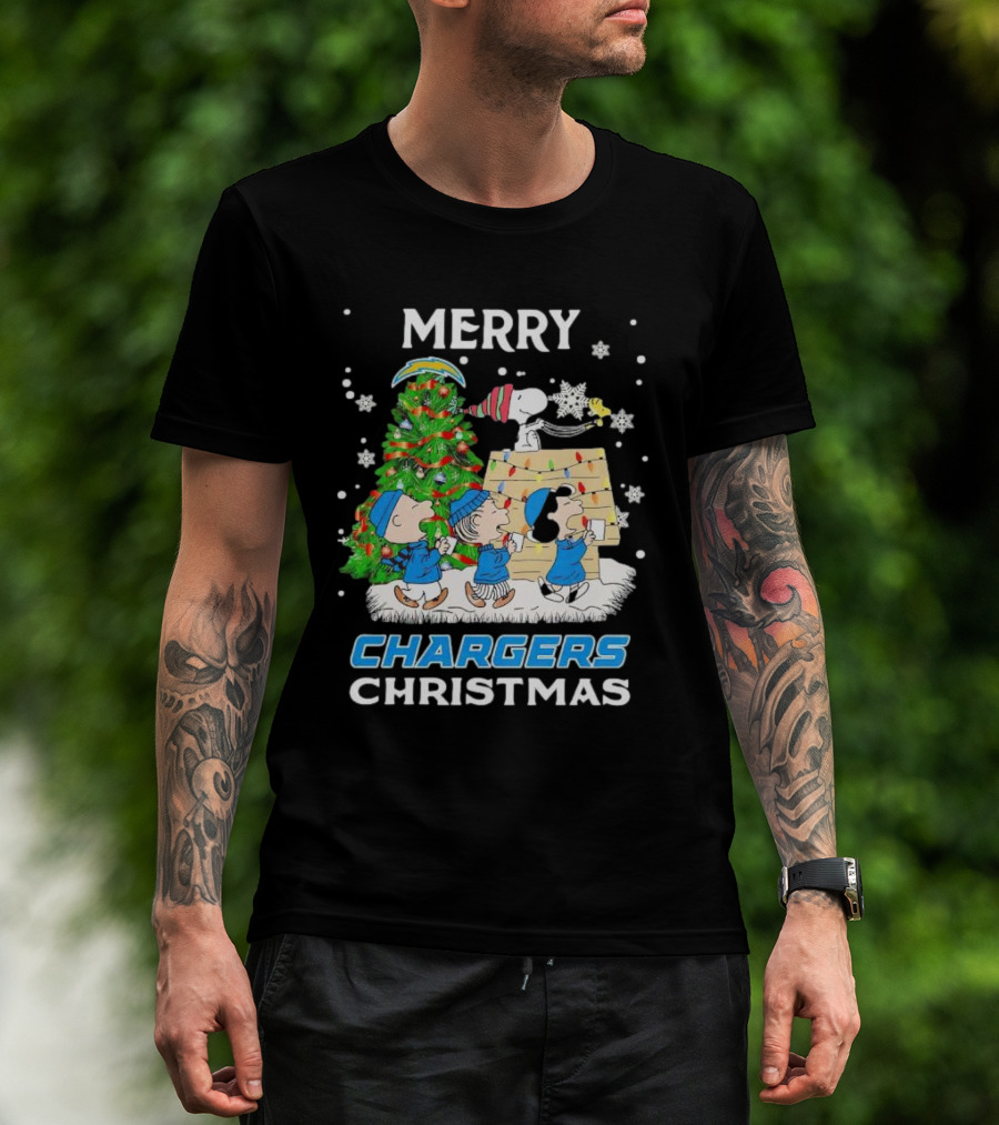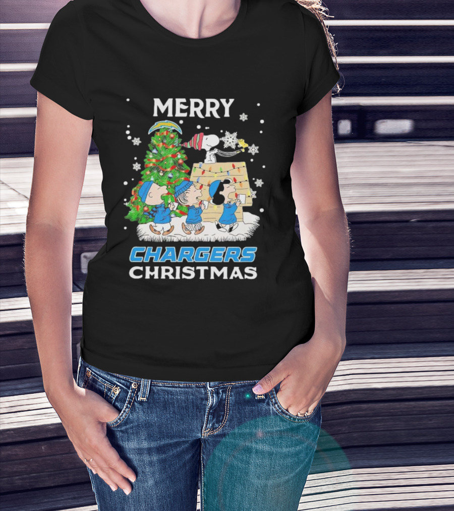 Merry Chargers Christmas Peanuts Characters T-Shirt