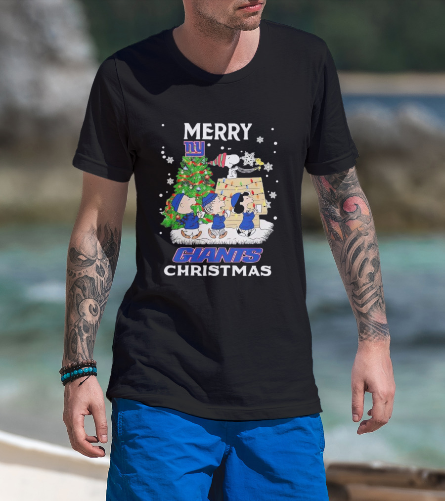 Merry Christmas Peanuts New York Giants T-Shirt