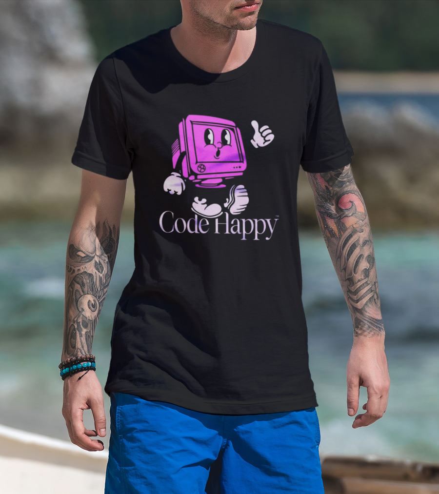 Jason Warner Poolside Code Happy Retro Computer Character T-Shirt