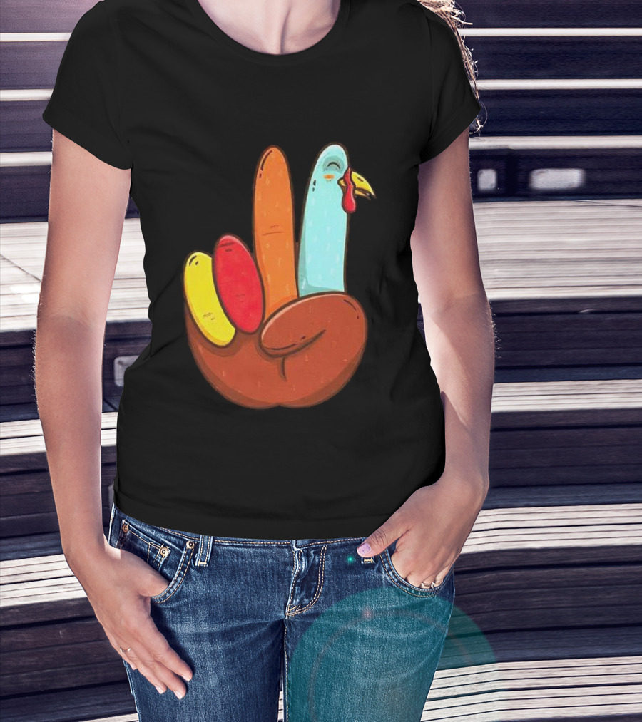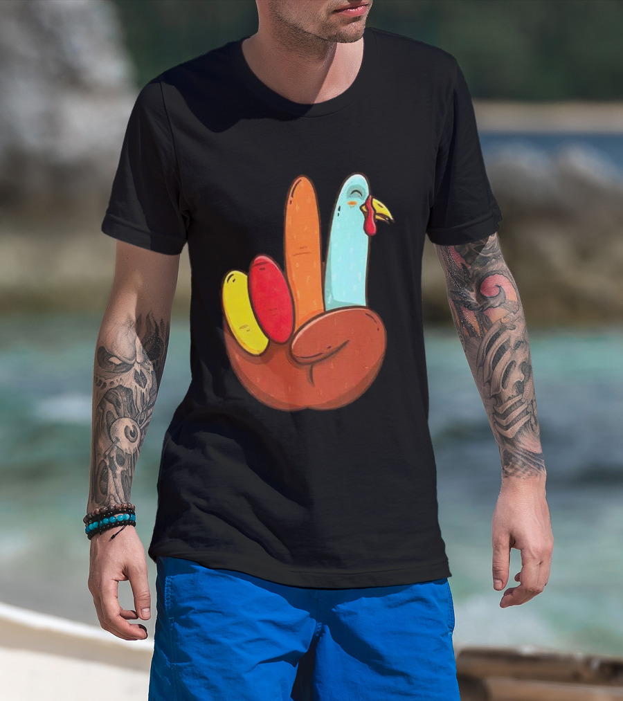 Peace For Turkeys Hand Gesture Turkey Pardon Humor T-Shirt