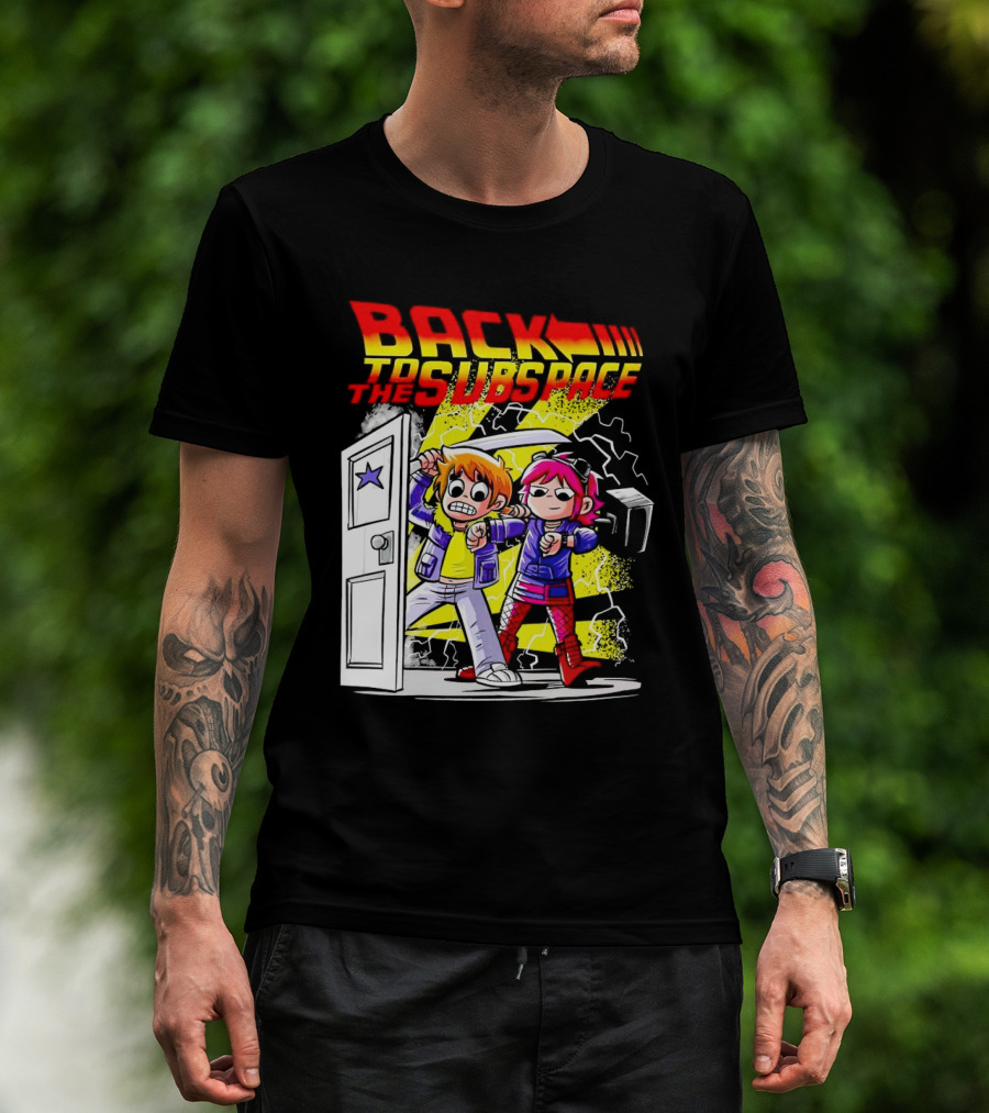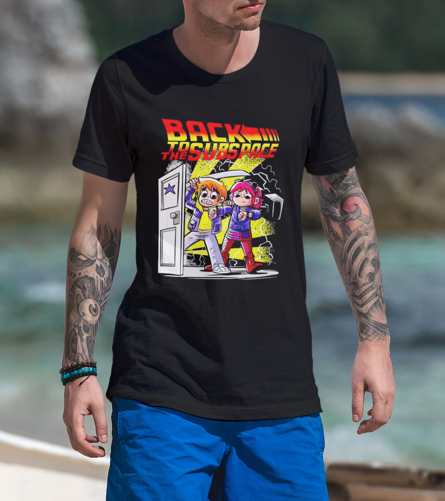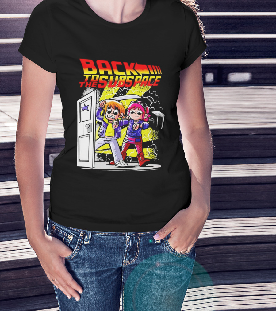 Back To The Subspace Scott Pilgrim And Ramona With Retro Door And Lightning T-Shirt