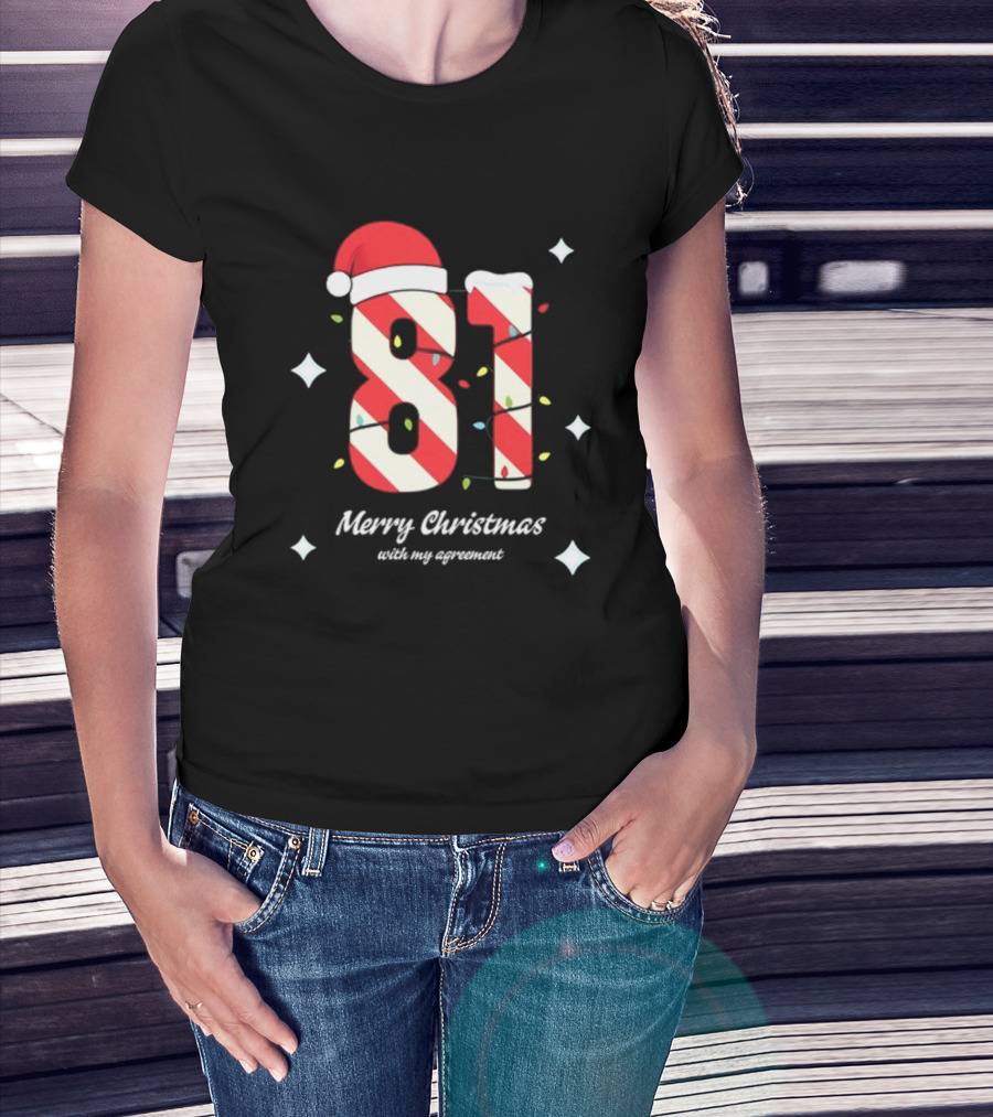 The 81 Merry Christmas Santa Hat Lights With My Agreement T-shirt is designed for everyday wear and a consistent fit. Fabric is pre-shrunk ring-spun cotton with durable stitching. See the size chart below for exact measurements.