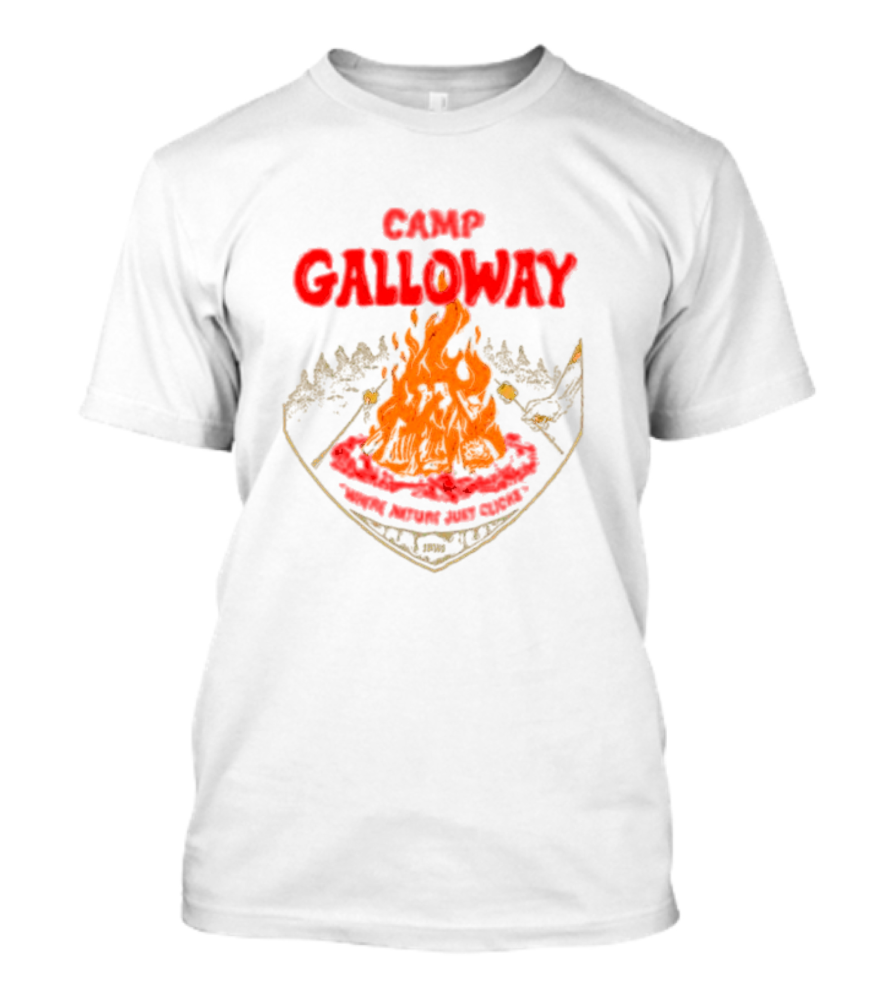 The Camp Galloway When Nature Just Clicks 1985 Fire and Mountains T-shirt is designed for everyday wear and a consistent fit. Fabric is pre-shrunk ring-spun cotton with durable stitching. See the size chart below for exact measurements.