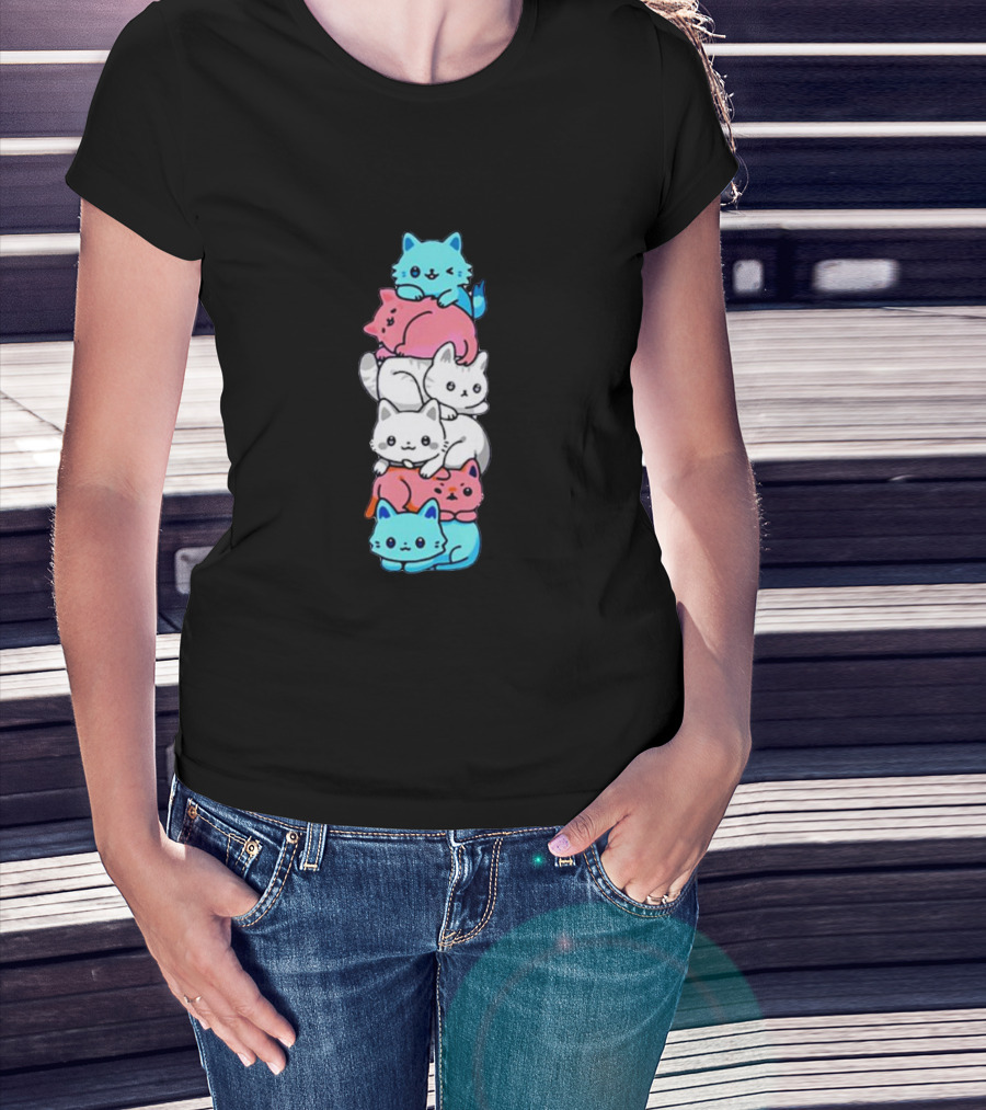 Transgender Pride Cats Stack Flag Colors T-Shirt