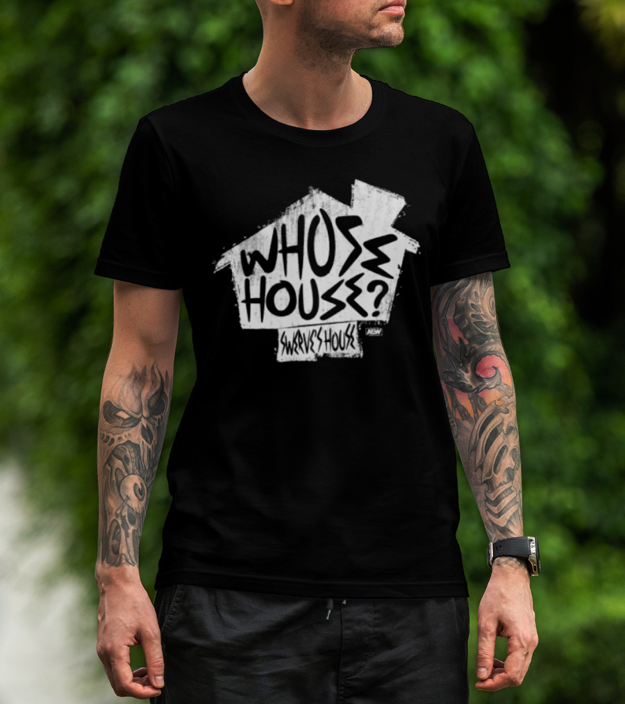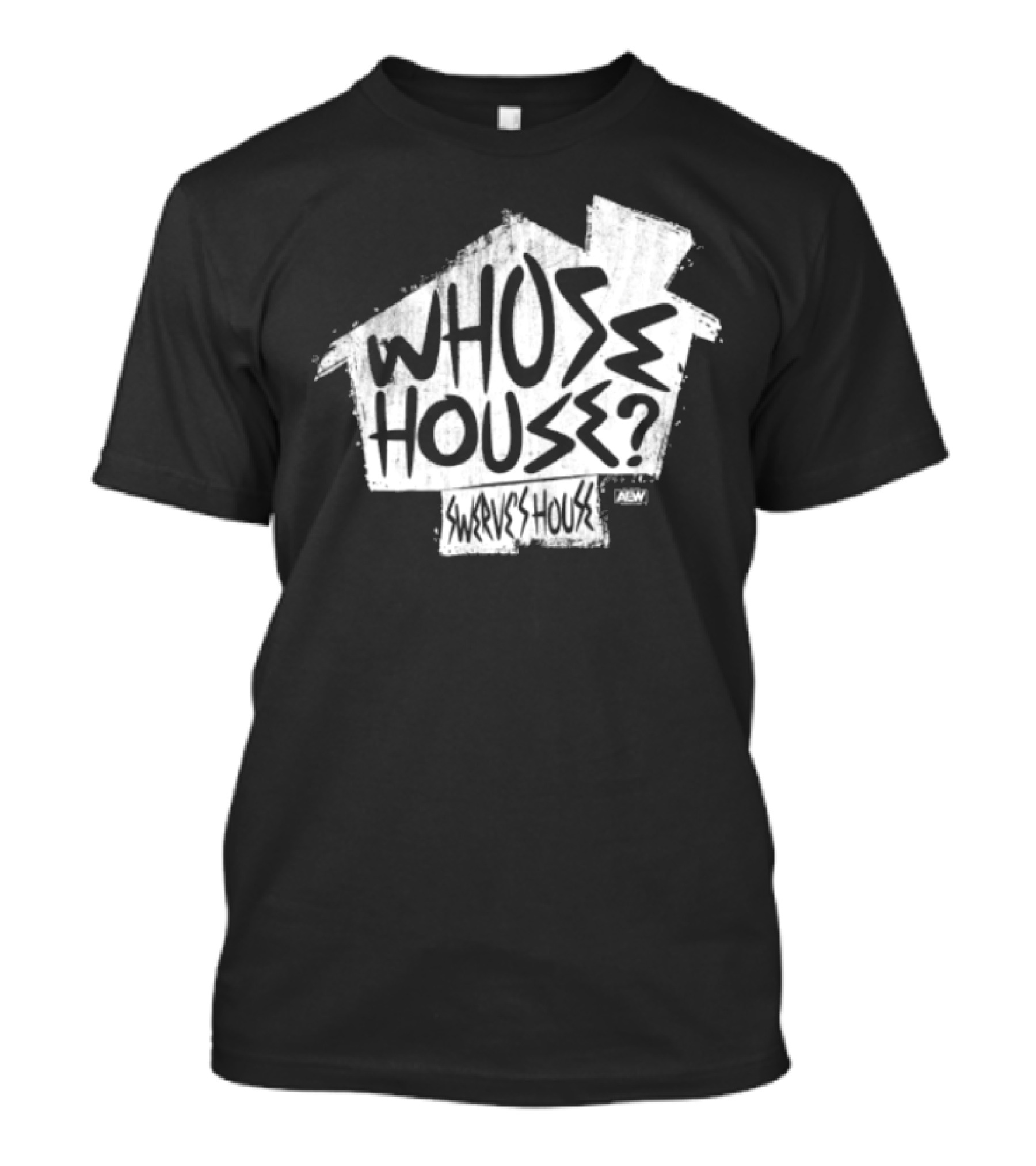 The Whose House Swerve's House AEW Styled T-shirt is designed for everyday wear and a consistent fit. Fabric is pre-shrunk ring-spun cotton with durable stitching. See the size chart below for exact measurements.