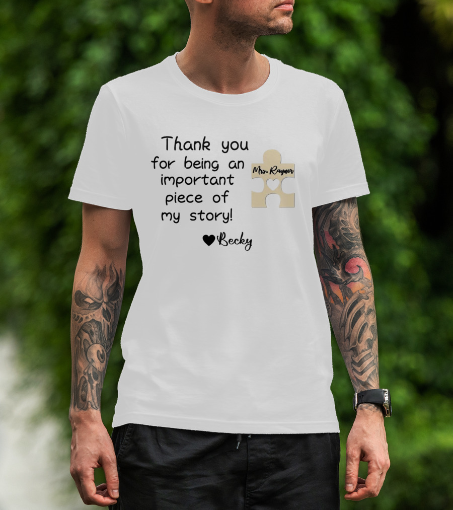 Thank You For Being An Important Piece Of My Story Personalized Teacher Gift Mrs. Raynor Custom Name Becky T-Shirt