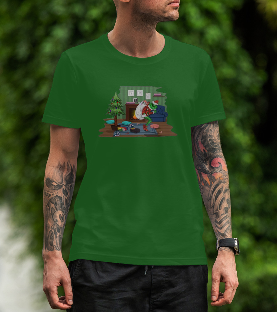 The How The Grinch Stole Sneakers Stealing Colorful Boxes by Christmas Tree T-shirt is designed for everyday wear and a consistent fit. Fabric is pre-shrunk ring-spun cotton with durable stitching. See the size chart below for exact measurements.