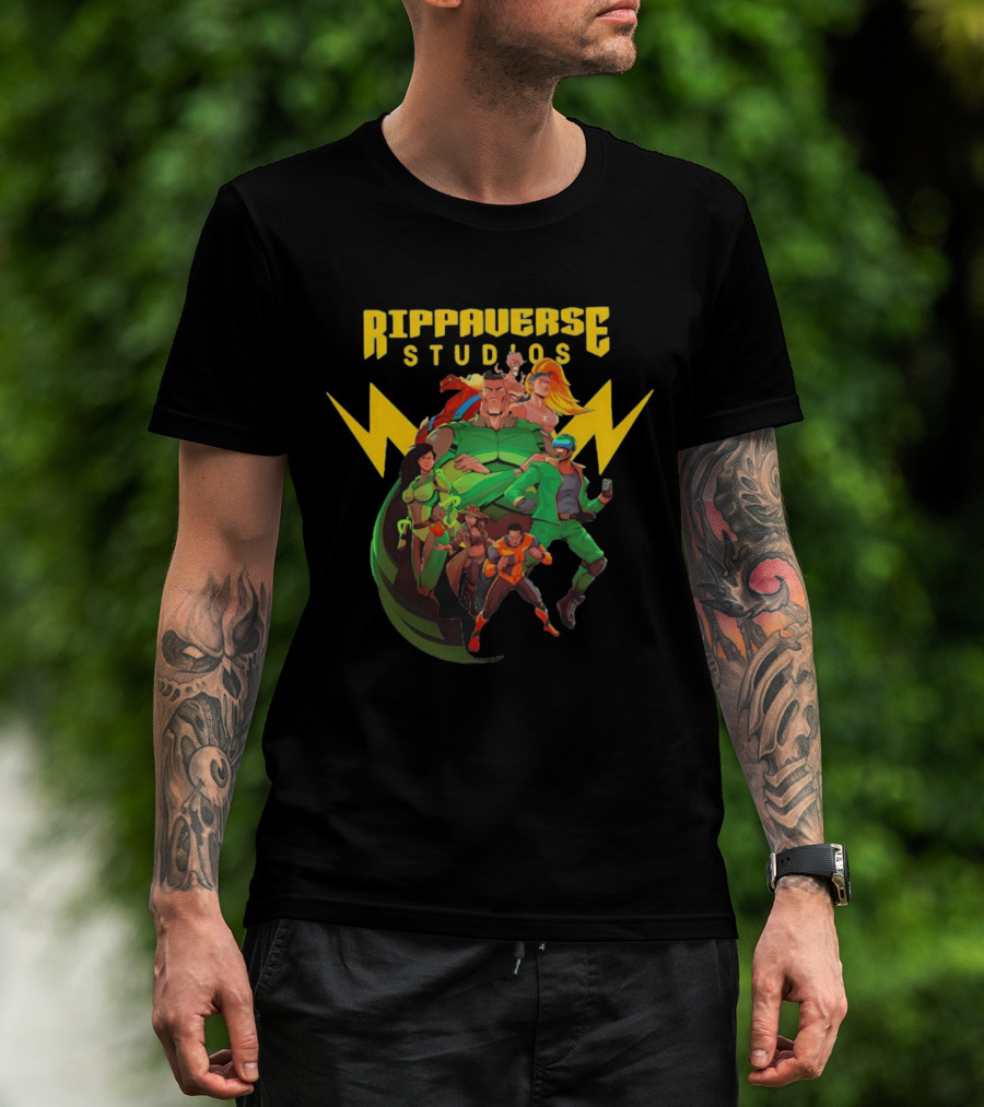 Rippaverse Studios Superhero Team Iconic Action Characters T-Shirt