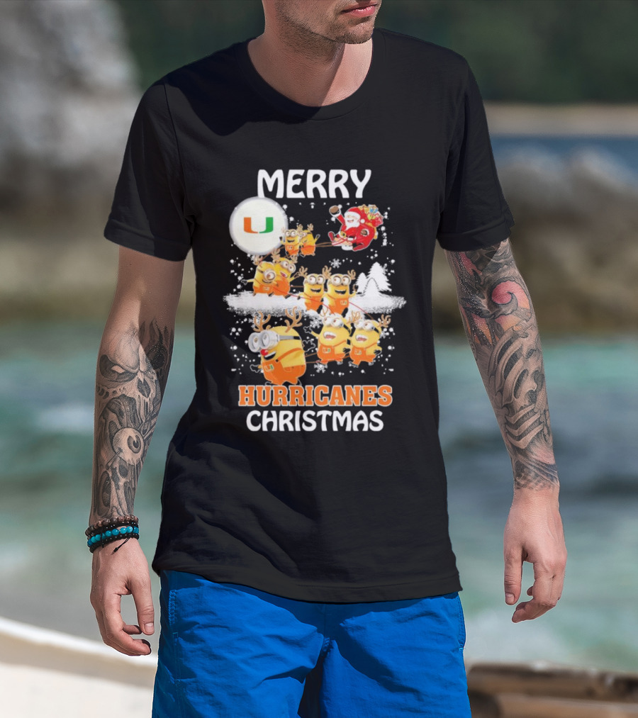Merry Minions Miami Hurricanes Christmas T-Shirt