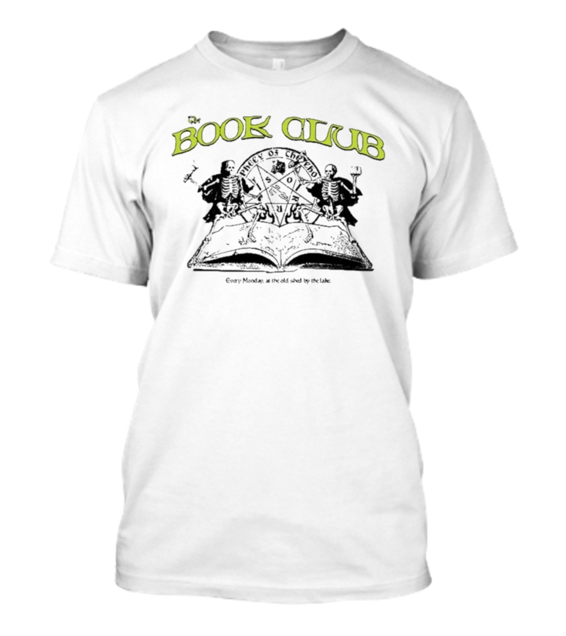 Book Club Every Monday At The Old Shed By The Lake With Mystical Skeletons And Open Book T-Shirt