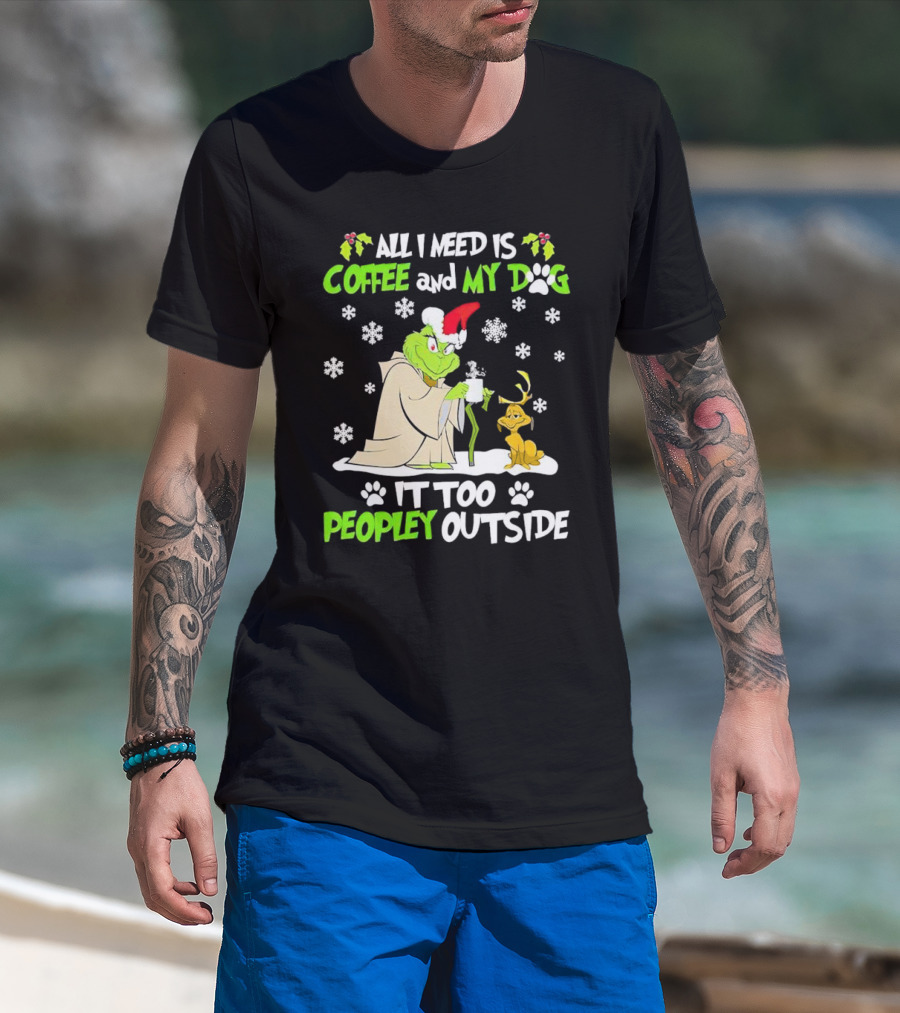 All I Need Is Coffee And My Dog It Too Peopley Outside Christmas Grinch T-Shirt