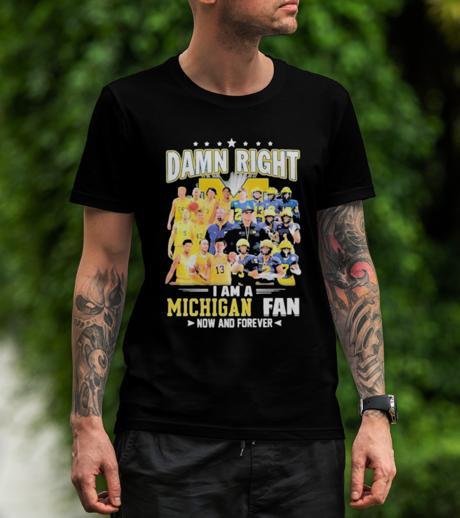 Damn Right I Am A Michigan Fan Now And Forever Football And Basketball Team Images T-Shirt