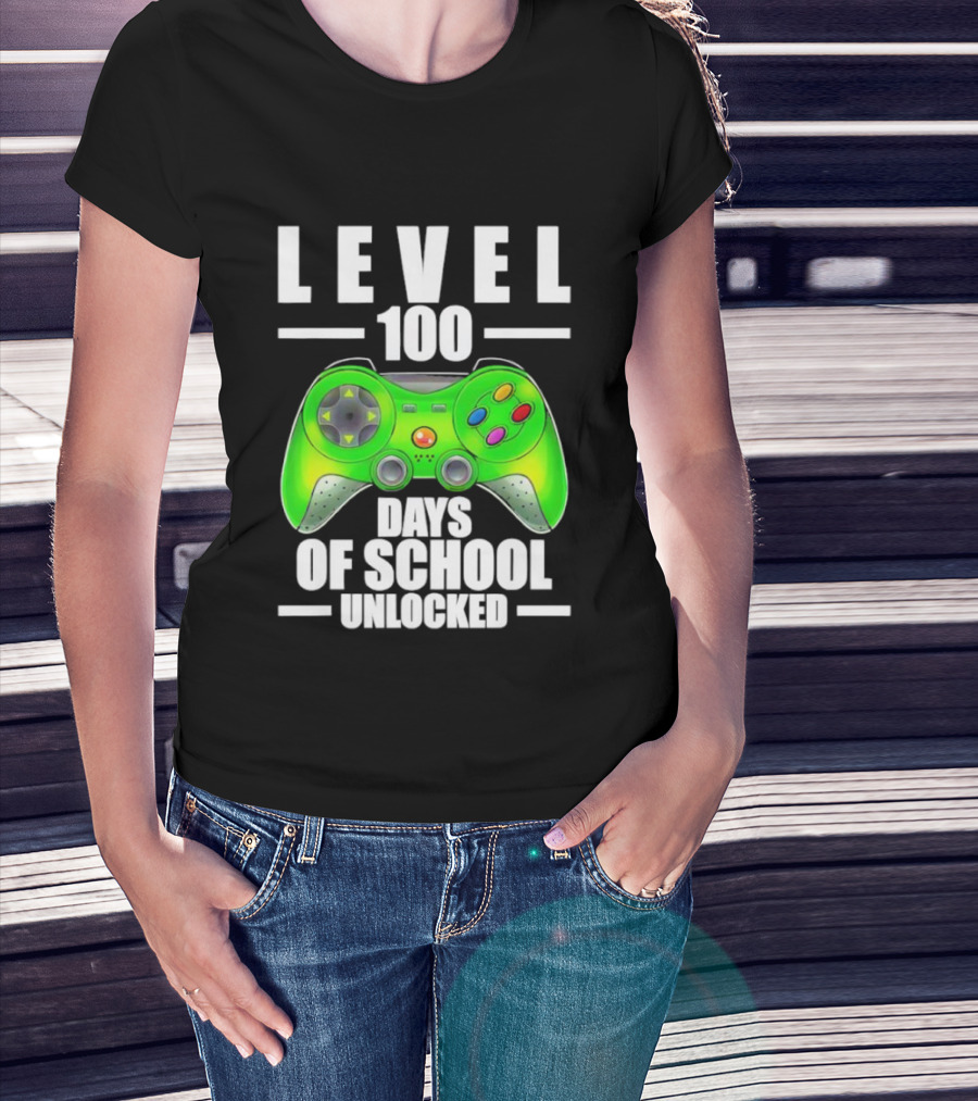 LEVEL 100 DAYS OF SCHOOL UNLOCKED GAMING CONTROLLER T-Shirt